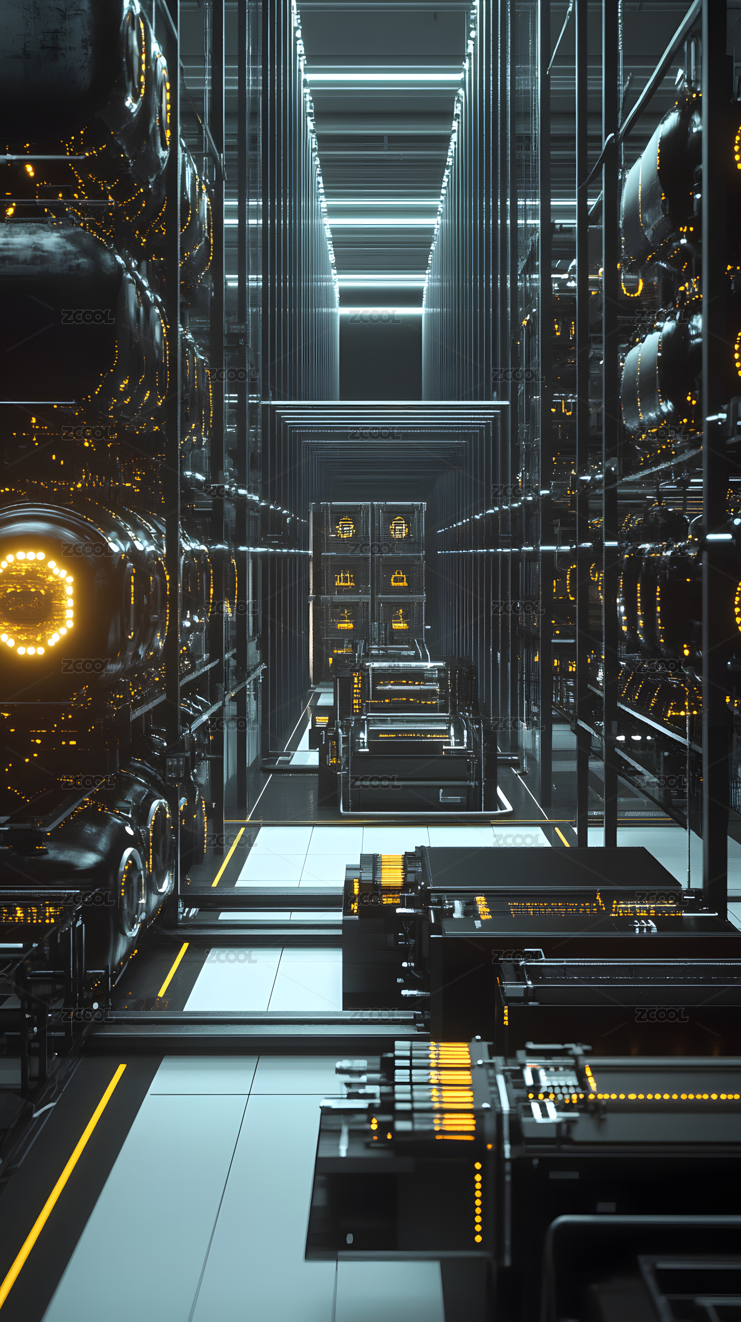 酷炫蓝色黄色搭配的三维立体未来科技感背景