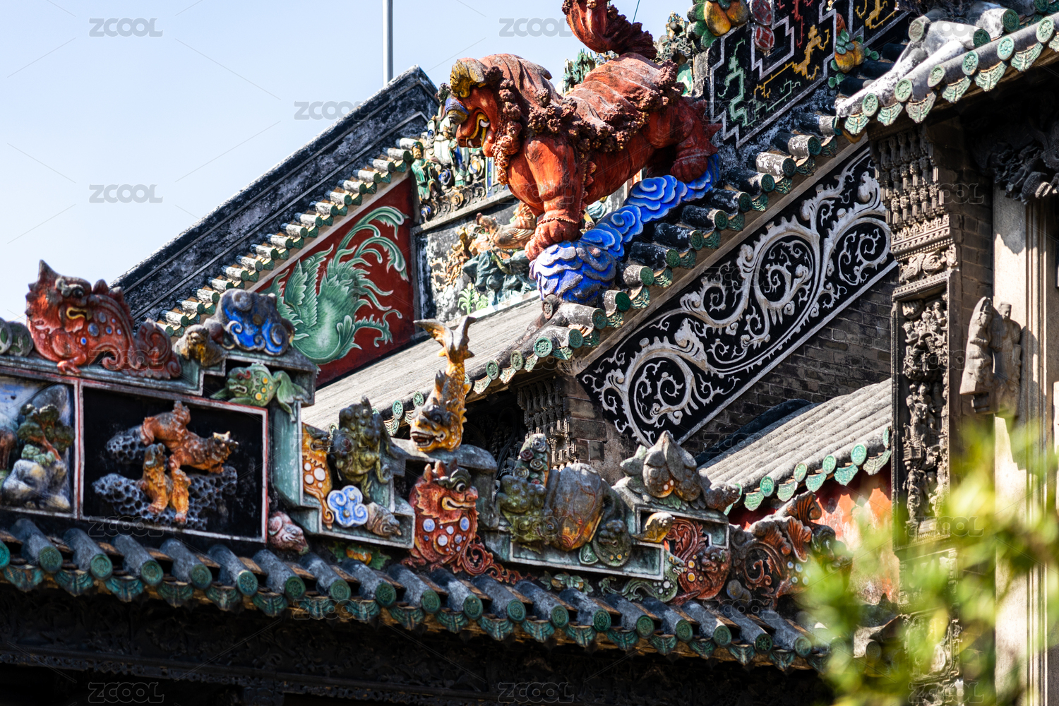 中国广州陈家祠岭南建筑屋顶灰塑陶塑