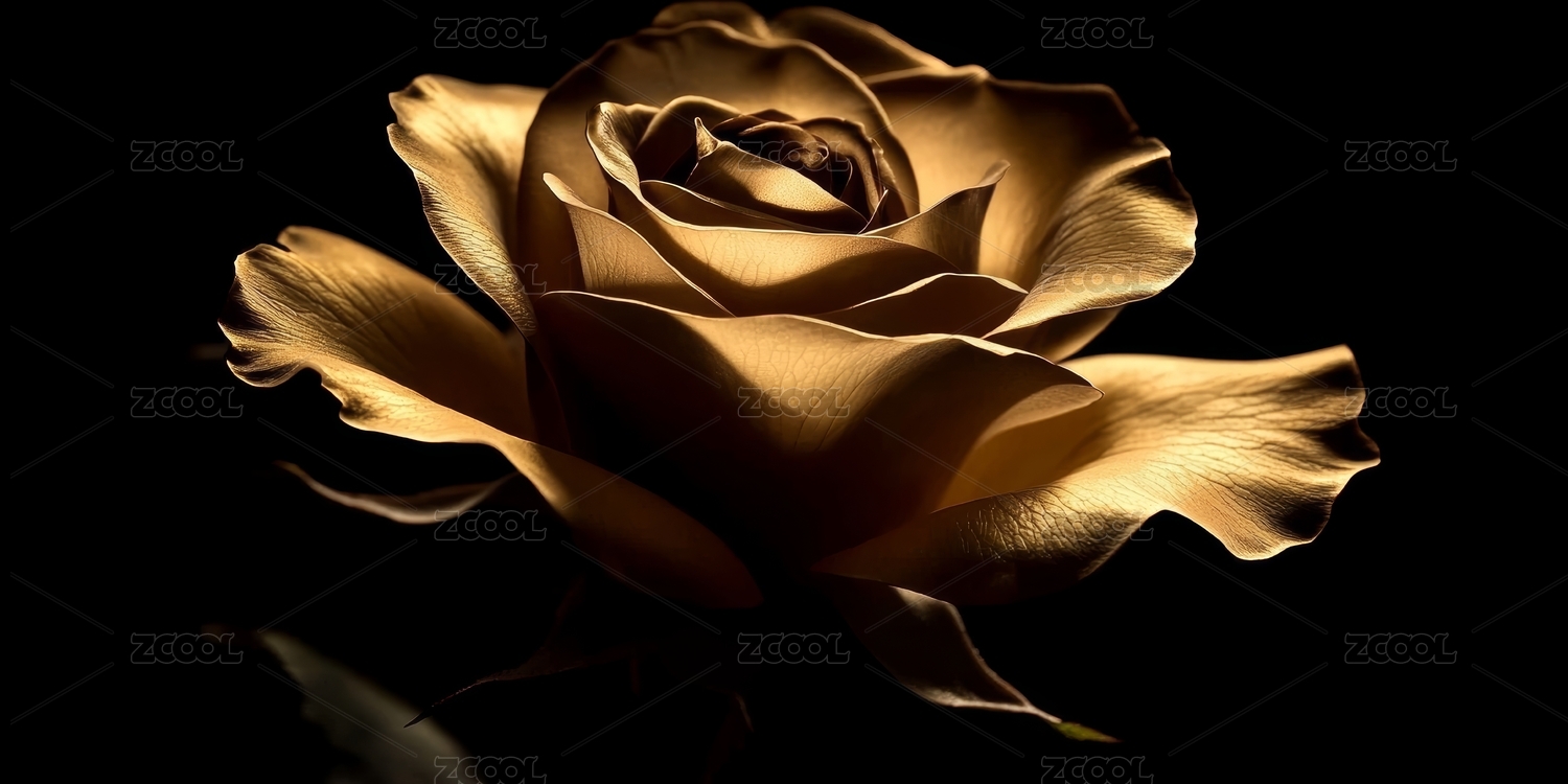 金色玫瑰在黑暗背景下的特写