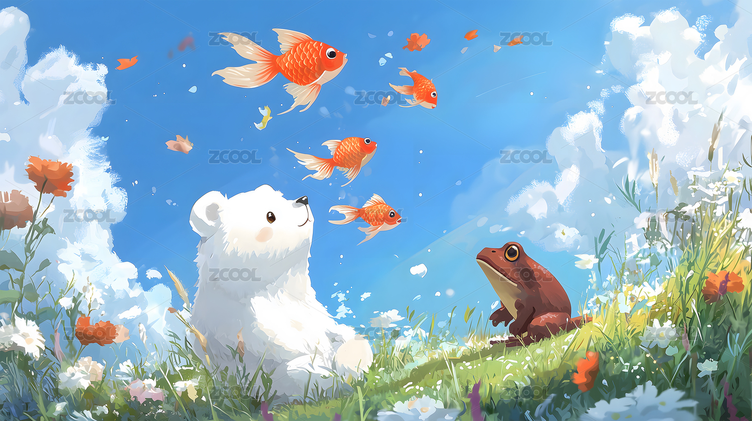 卡通,可爱,动物,背景,萌宠,插画,场景,快乐,阳光,绘画