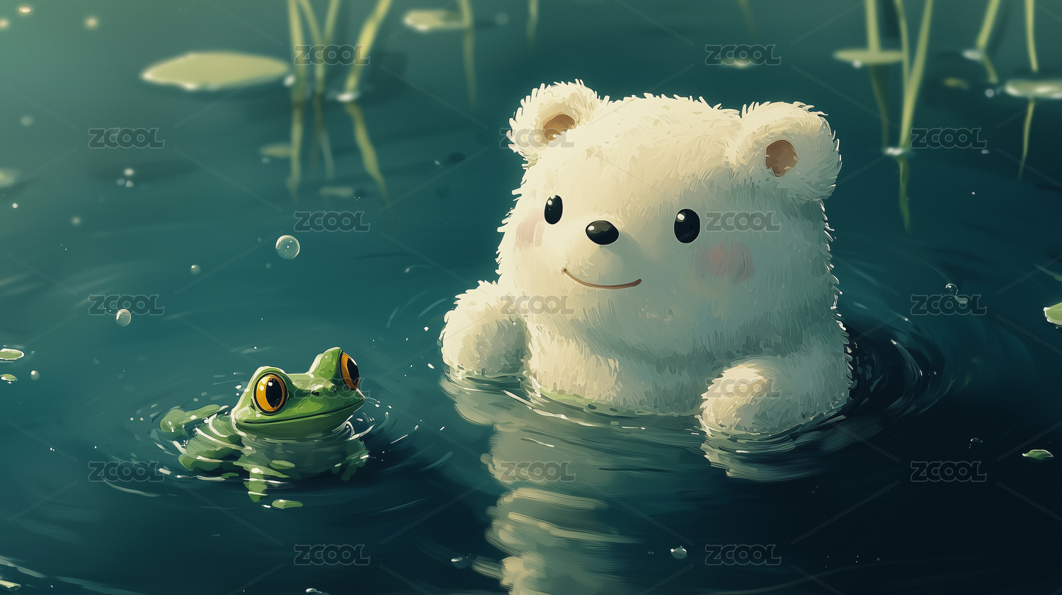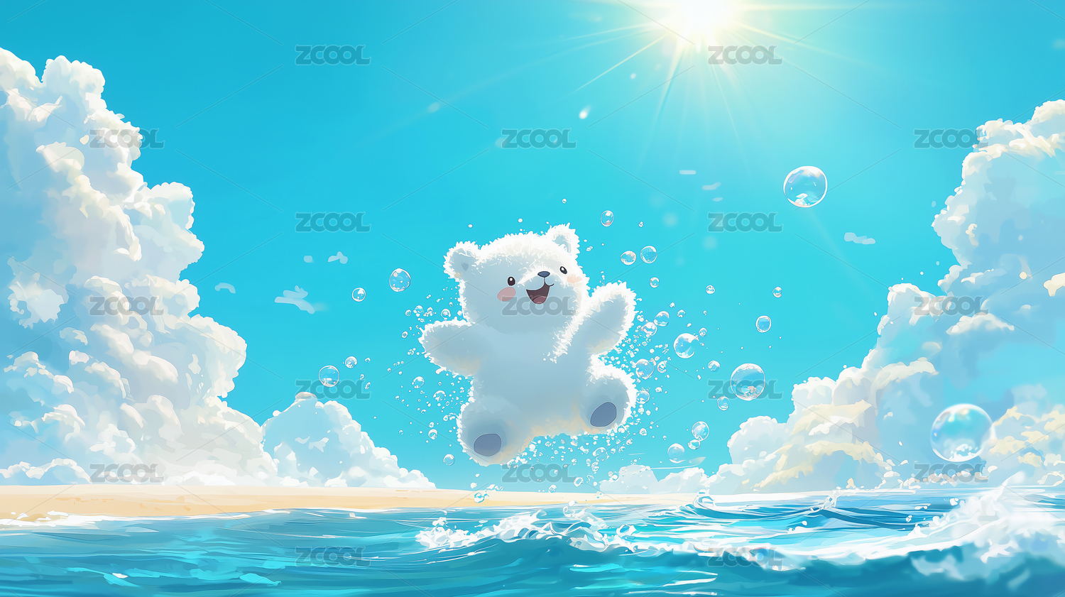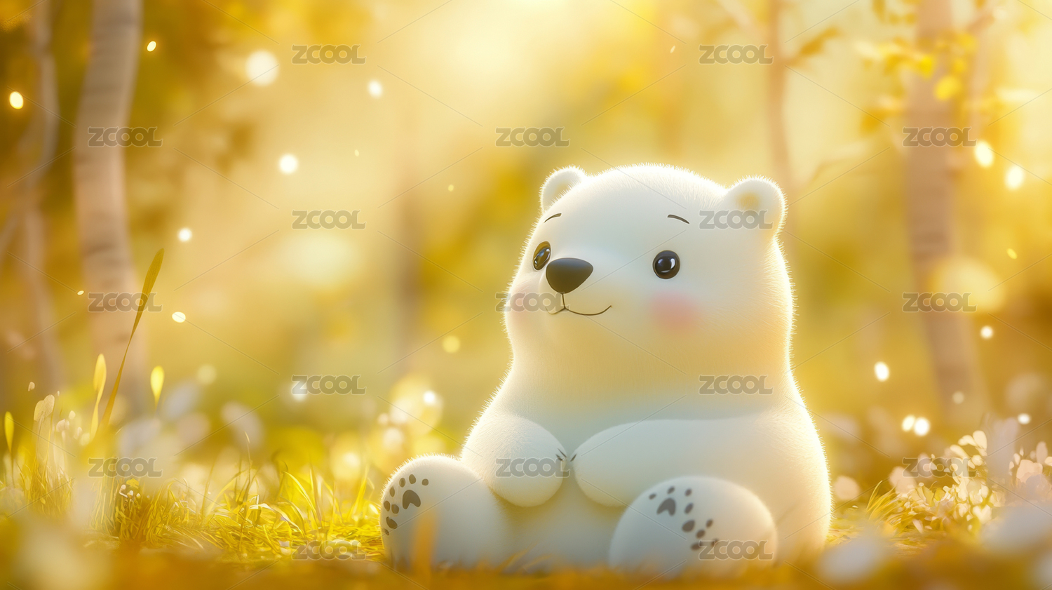 北极熊可爱唯美野生动物3D卡通插画壁纸
