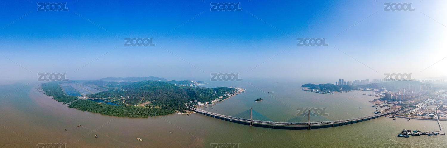 航拍中国广东珠海淇澳岛淇澳大桥风光