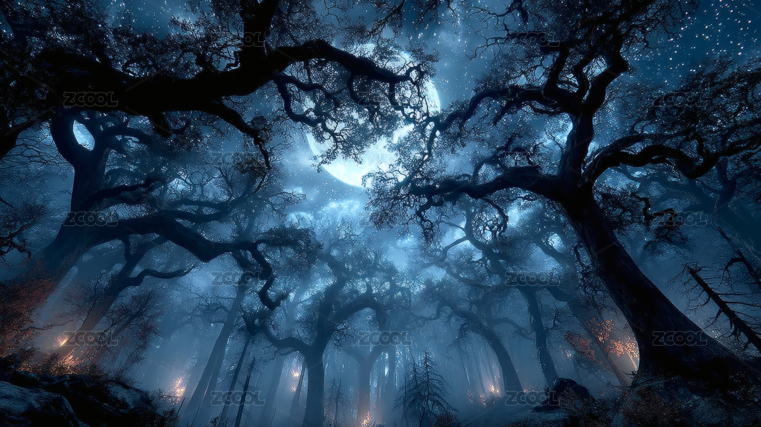 阳光透过雾气笼罩的大树展现出一幅神秘而美丽的景象