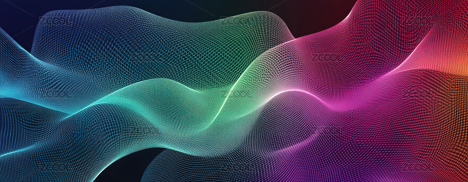 色彩斑斓的流动线条构成抽象的波浪山峦