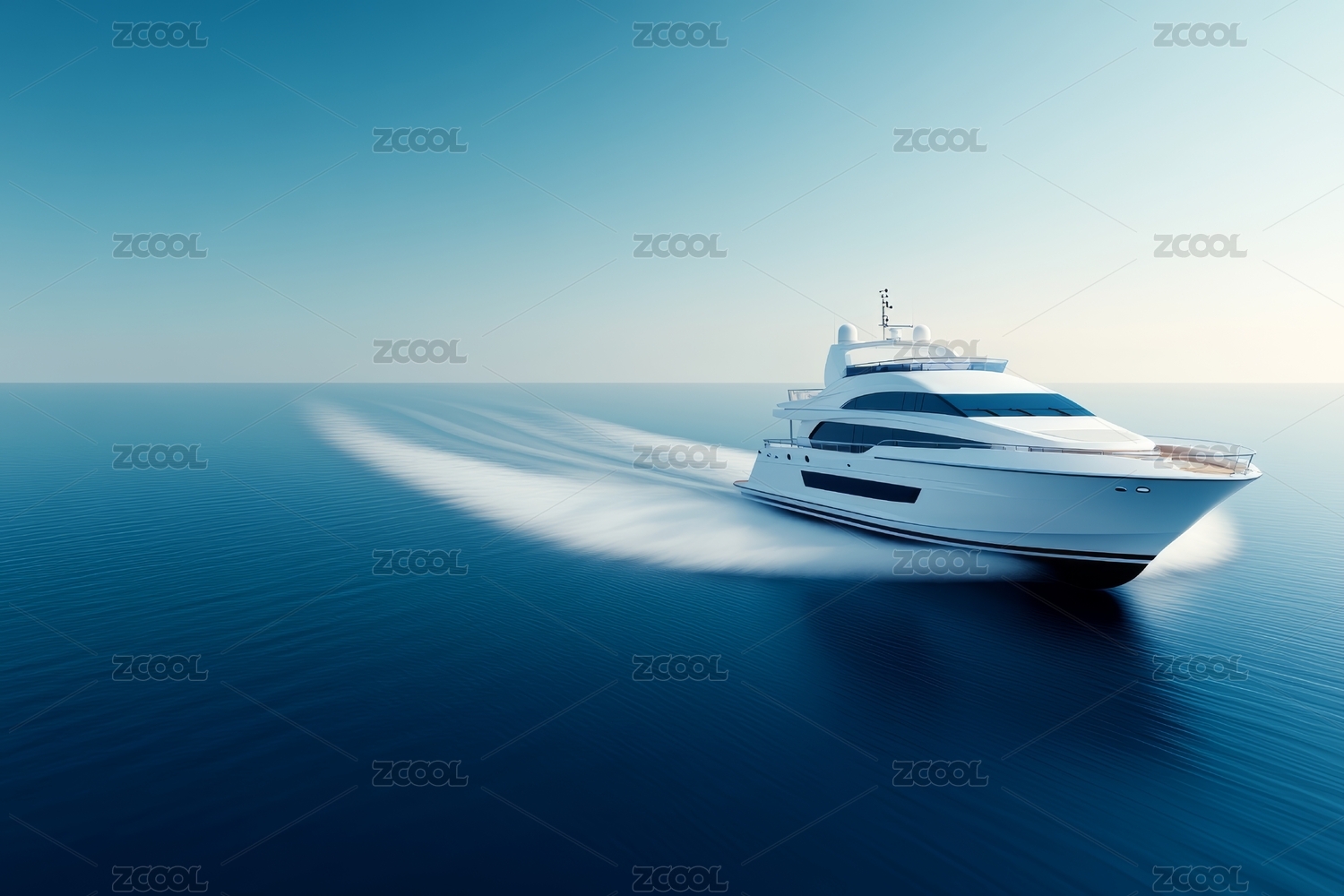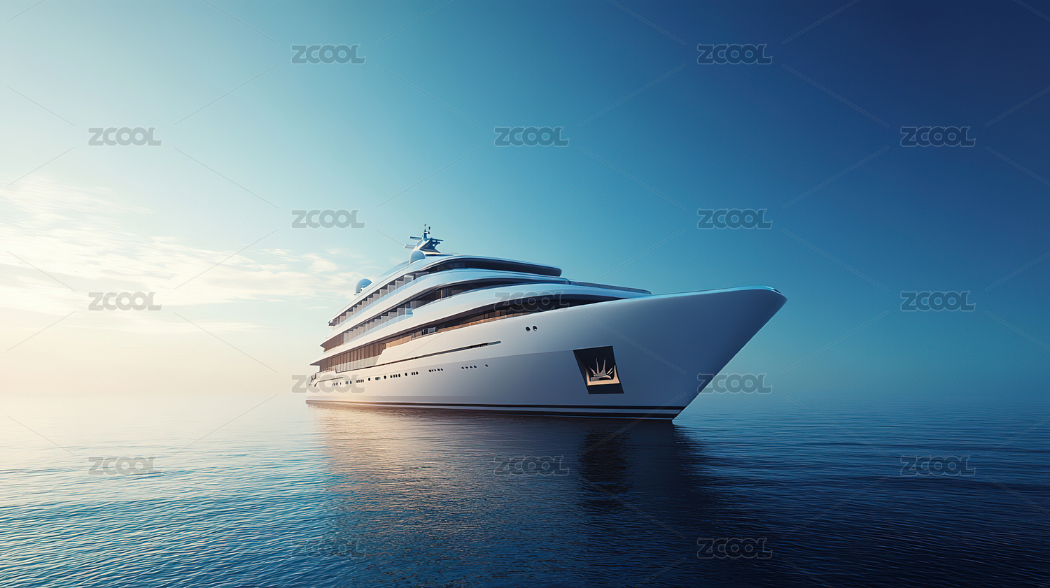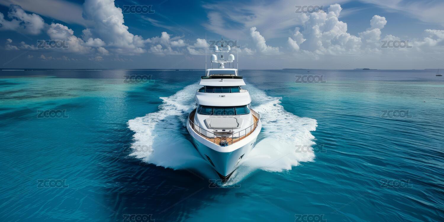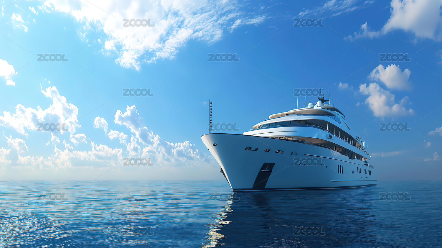 豪华,游艇,航行,广阔,海面,海洋,蓝天,白云,水上交通,水上