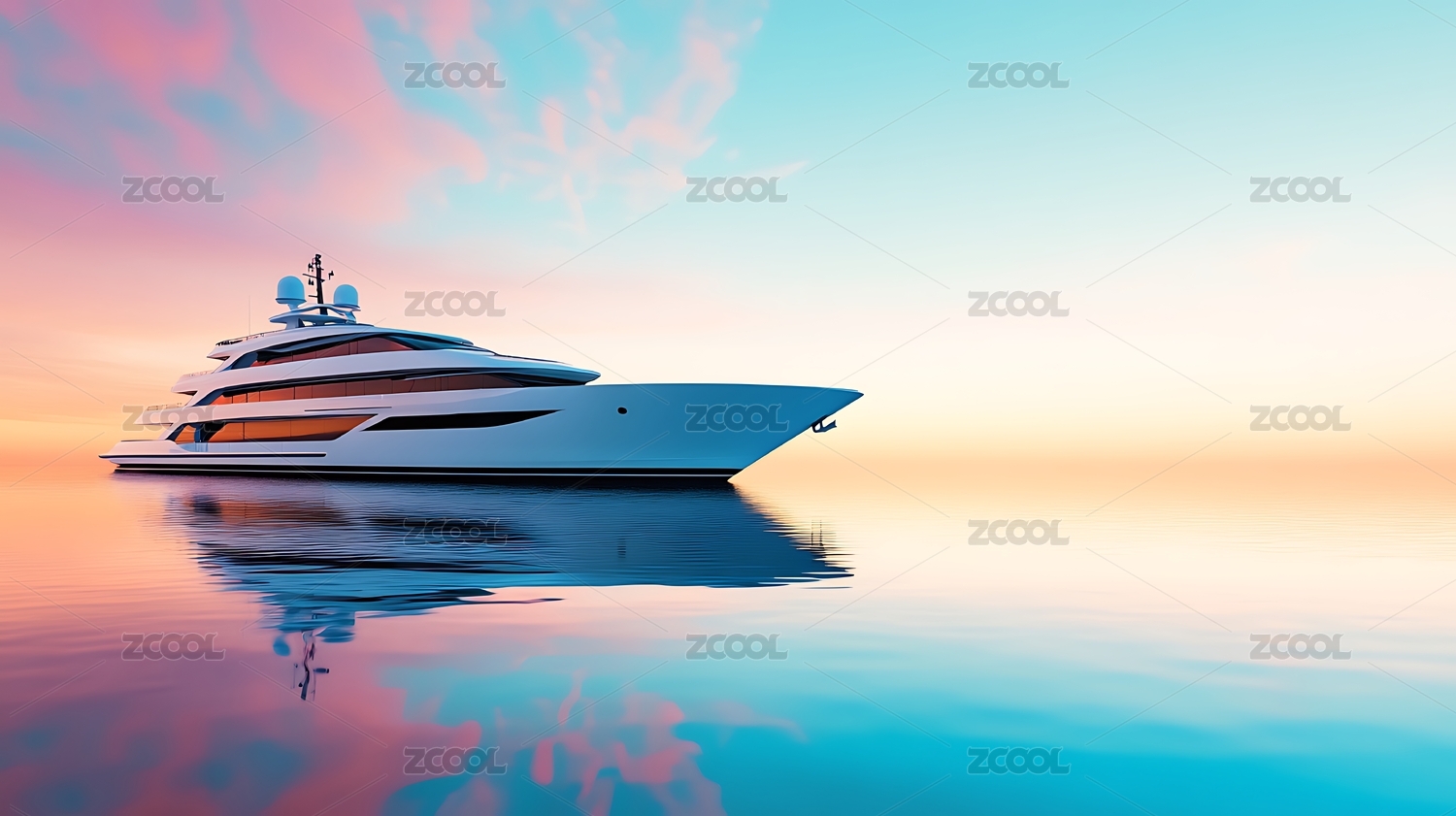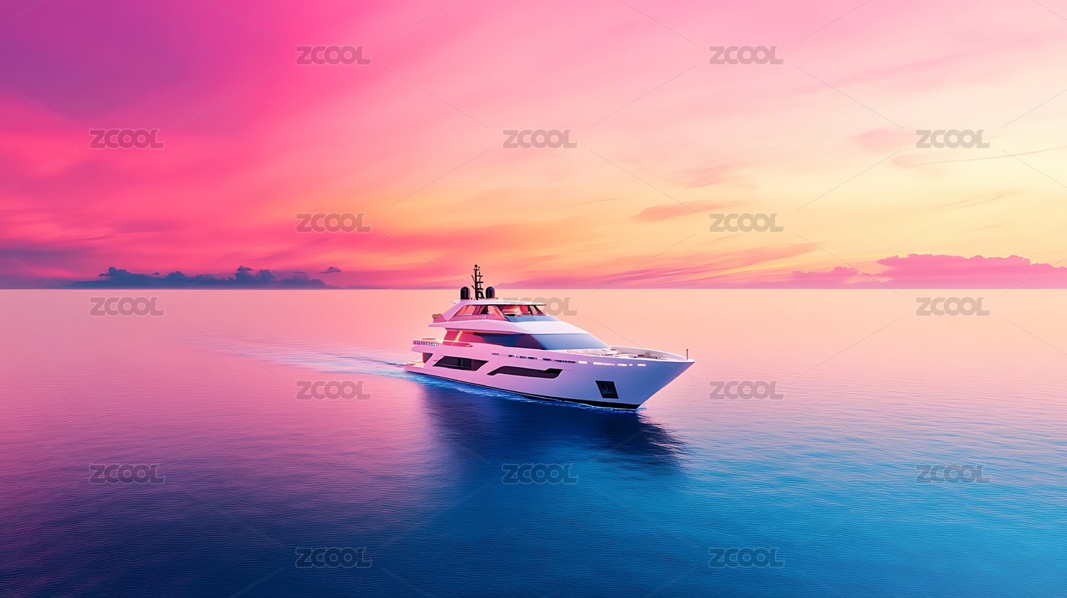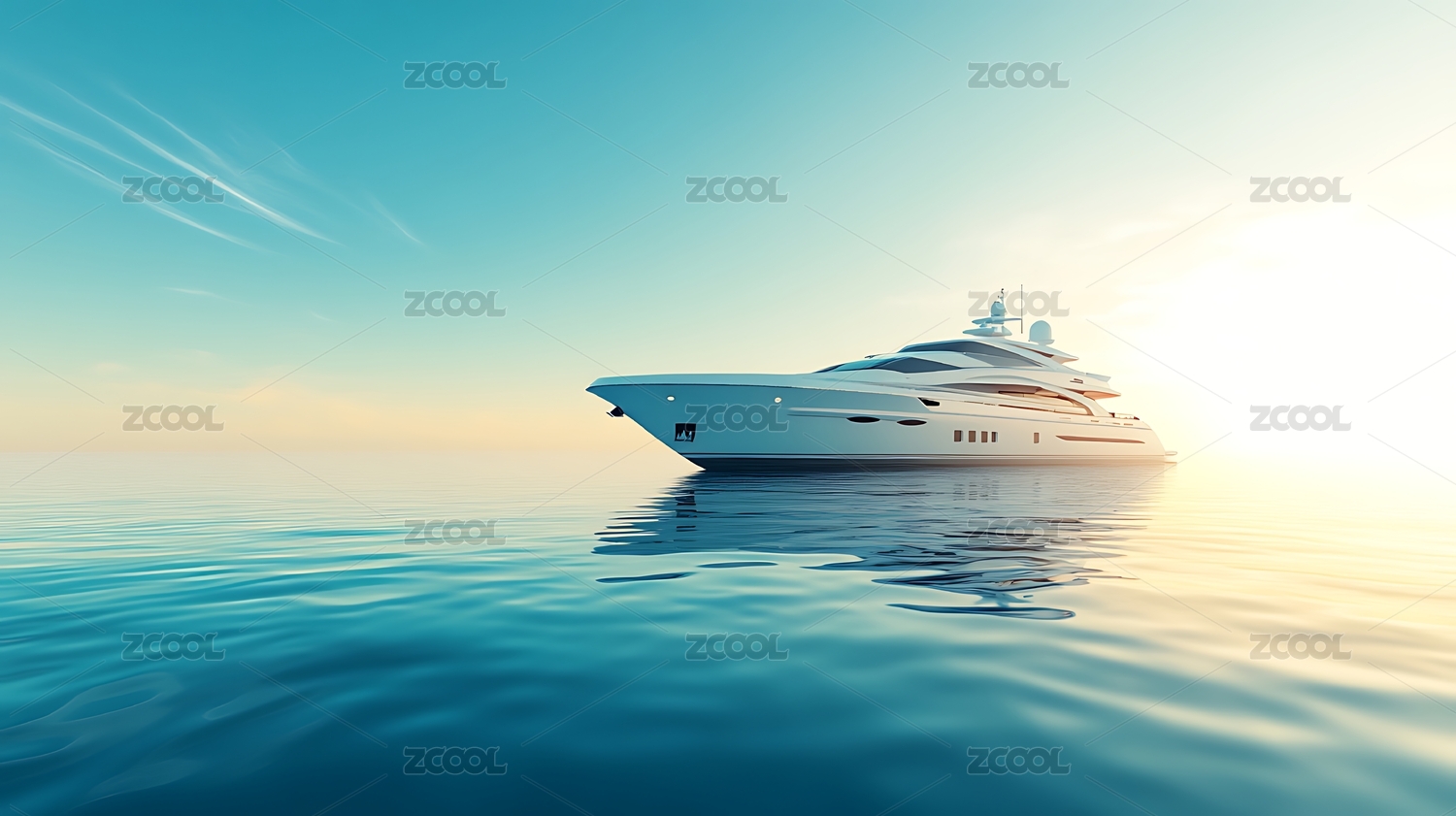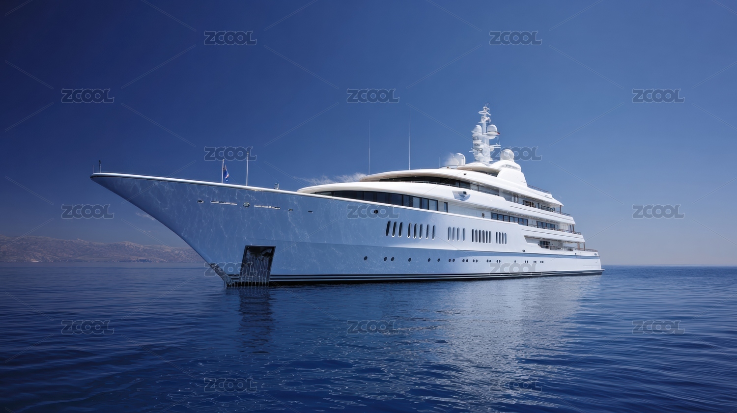 豪华,游艇,航行,广阔,海面,海洋,蓝天,白云,水上交通,水上