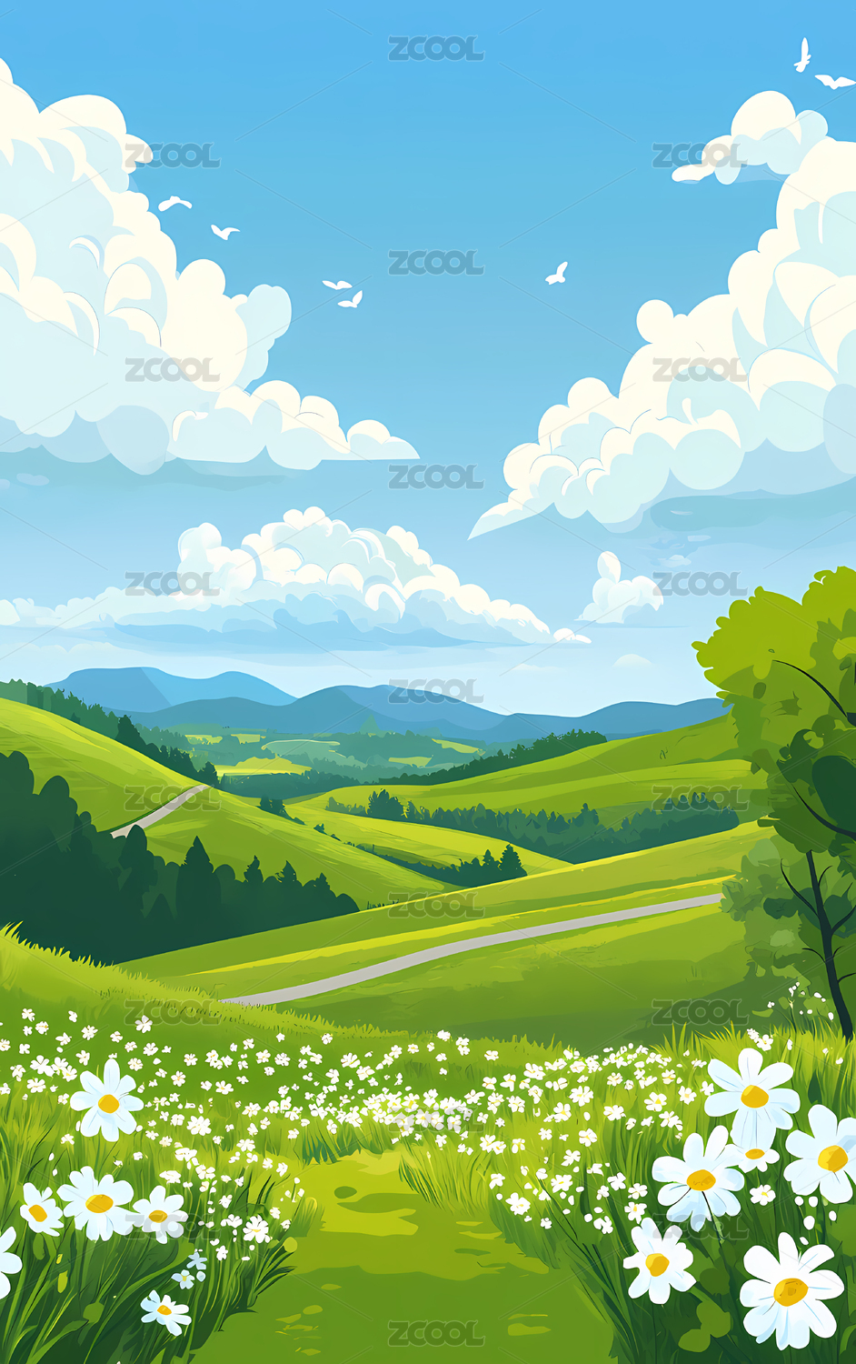 画面,阳光,景色,自然,绿色,植物,蓝天,白云,河流,田野