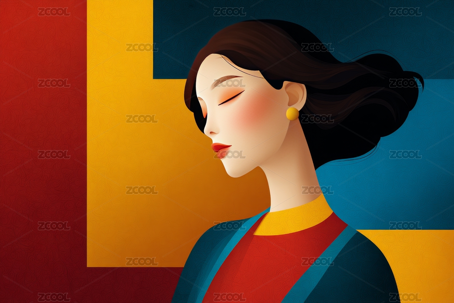 女性插画红色背景