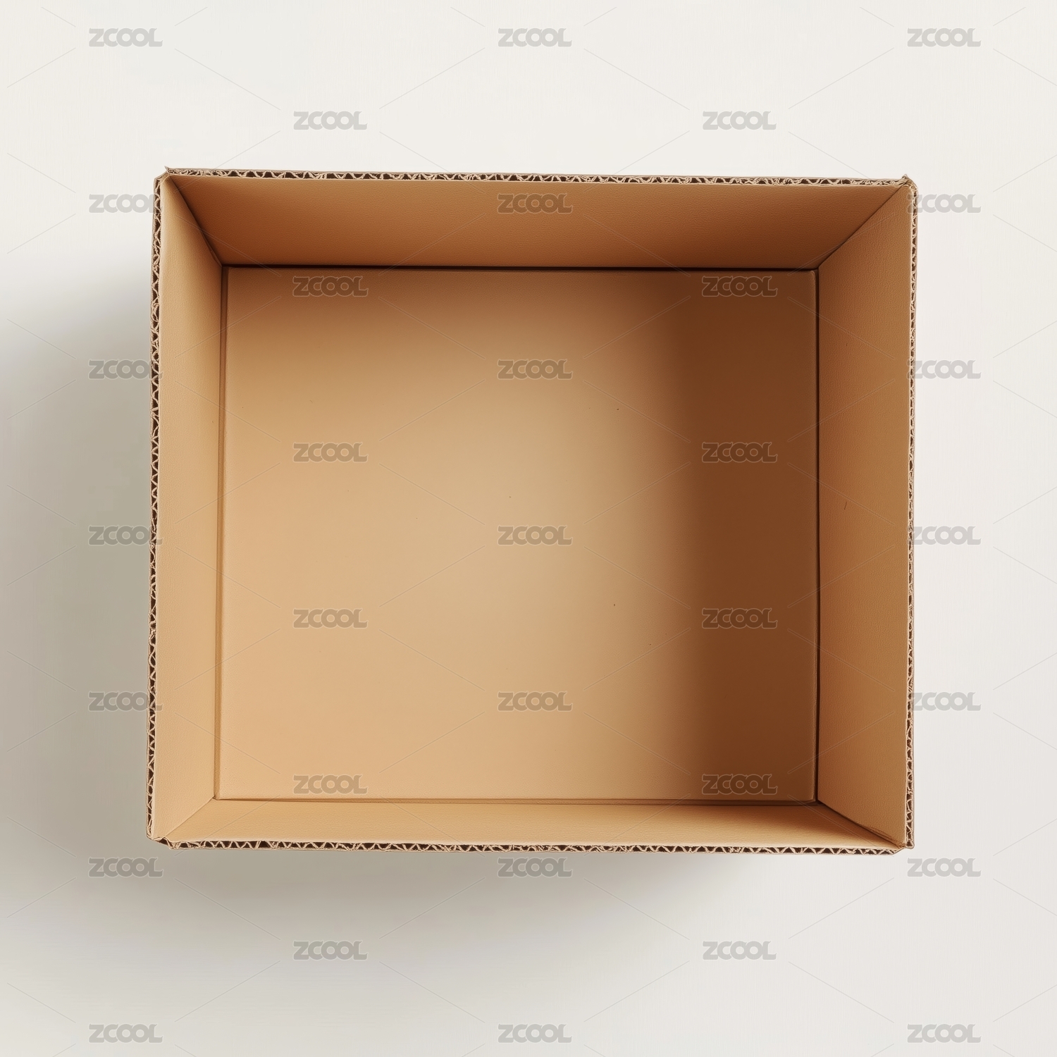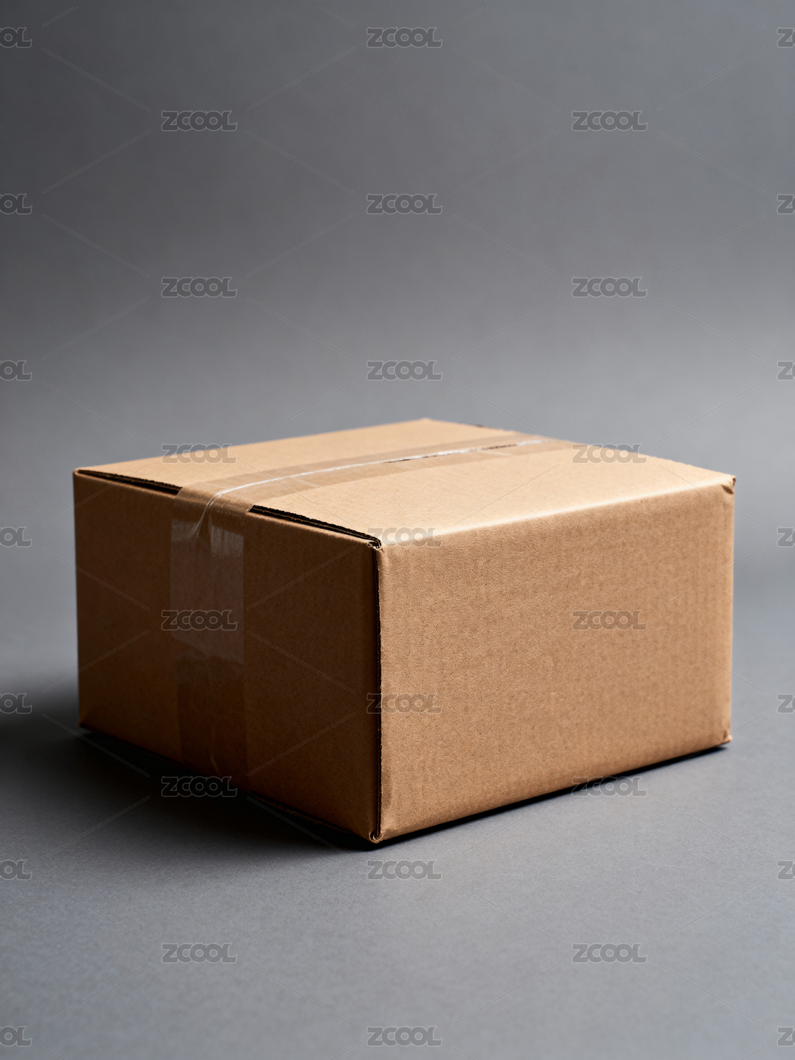 木纹桌面上放着一个没有标签的黄色快递纸箱
