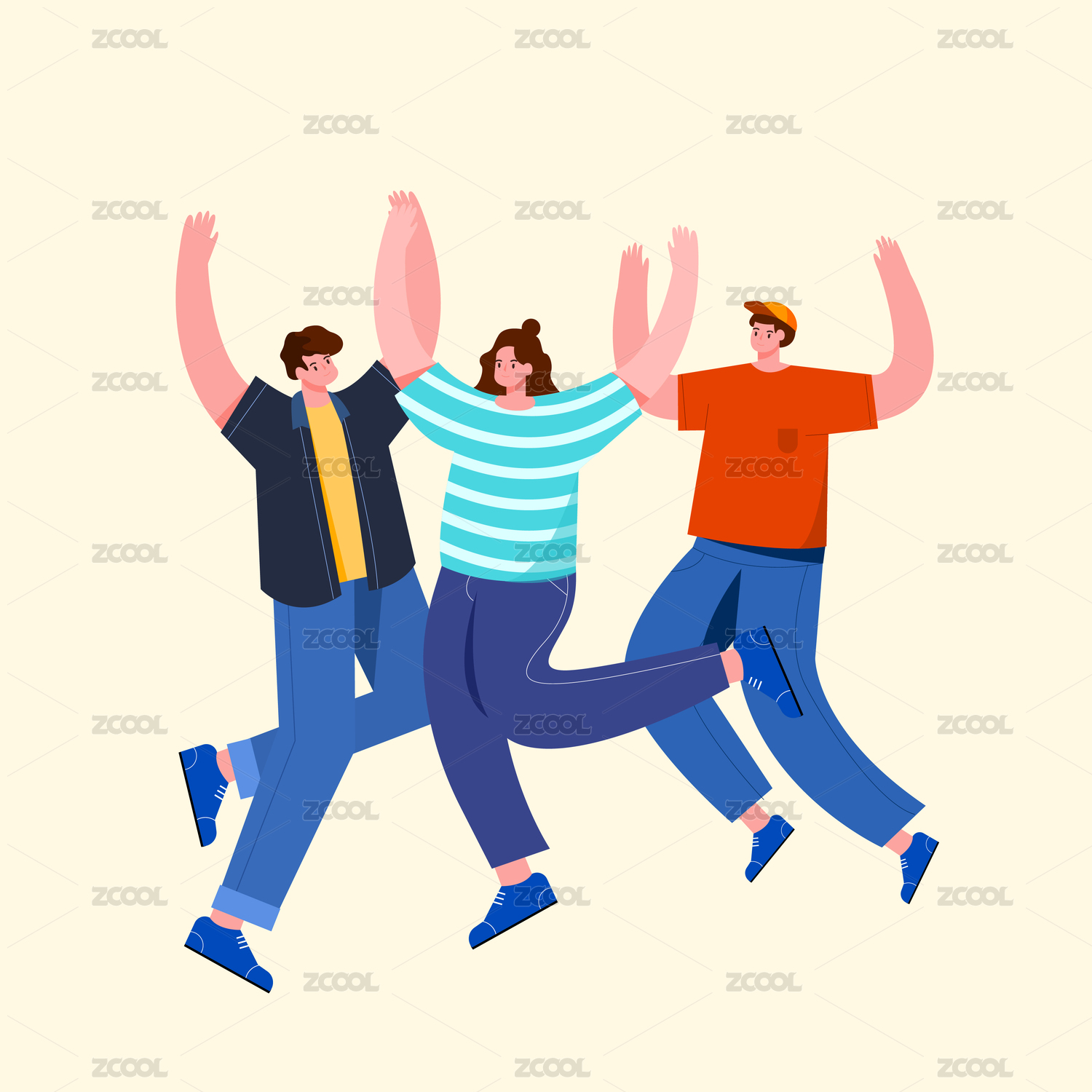 五四青年节青春活泼快乐年轻人跳跃庆祝插画