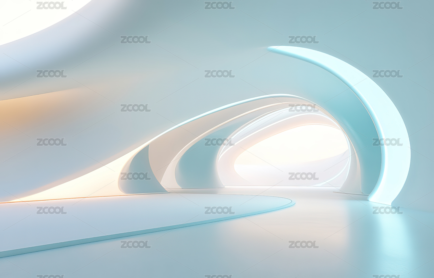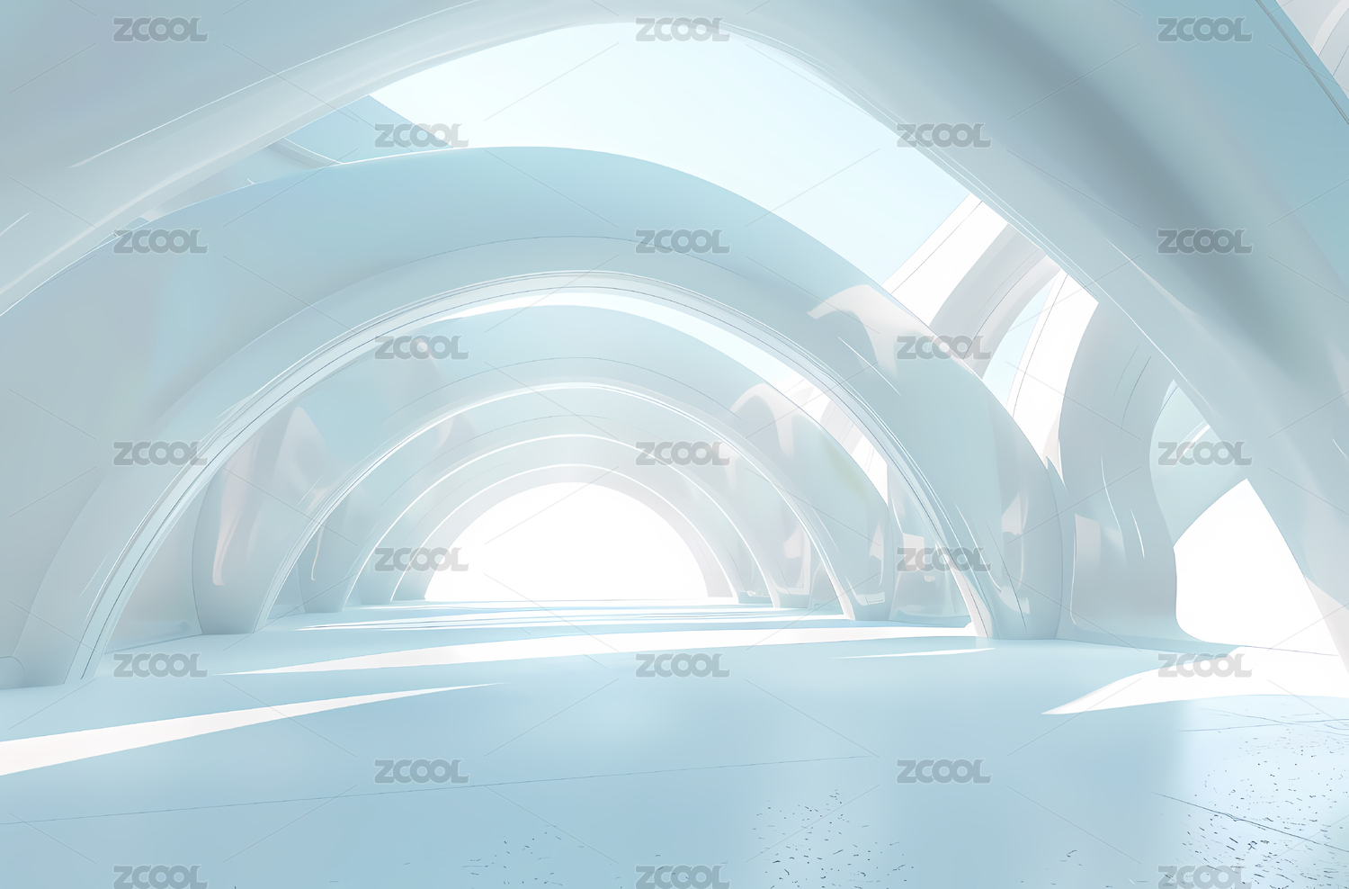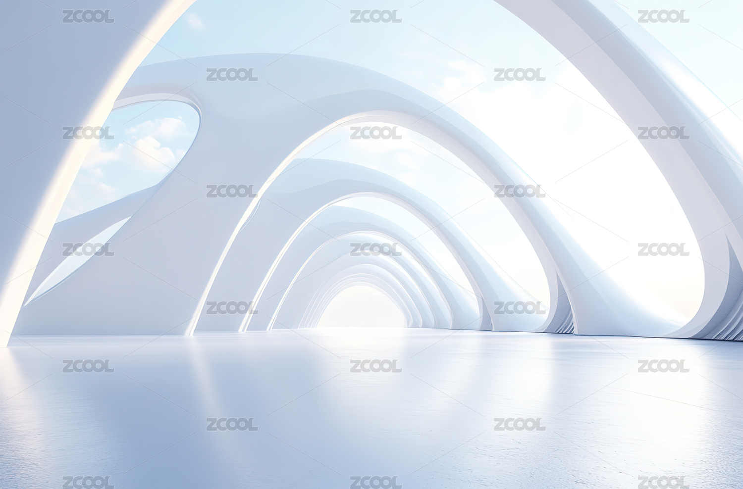 白色,弧形,空旷,建筑,平行,线条,浅蓝色,背景,现代,室内