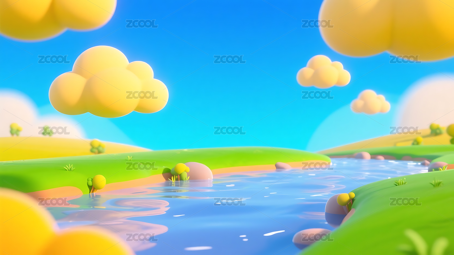 悬崖,卡通,天空,云朵,植物,蓝色,自然,风景