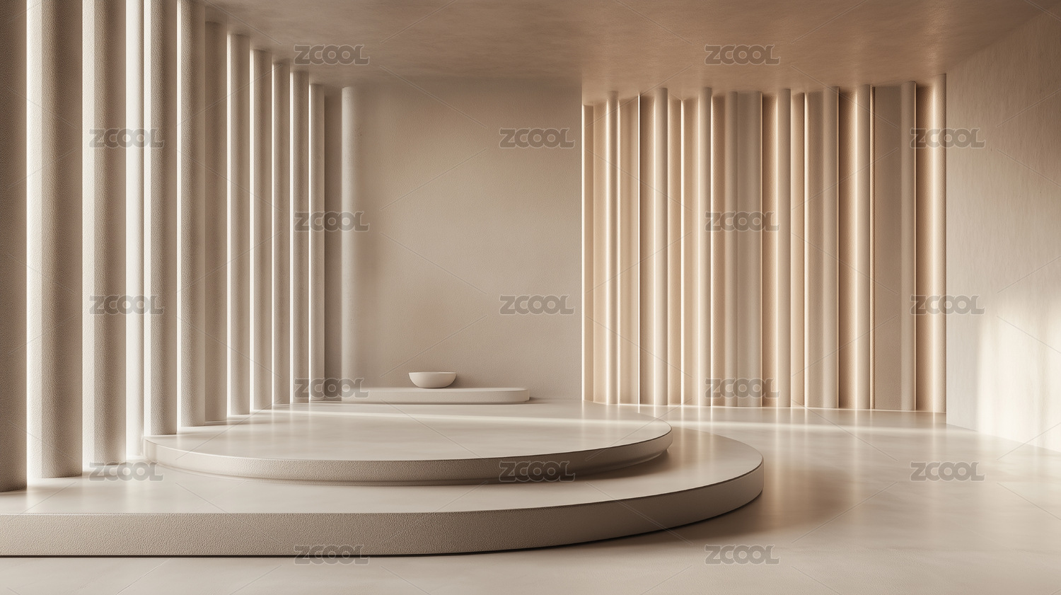木质,展示台,圆形,拱门,简约,现代,室内,设计,装饰,植物
