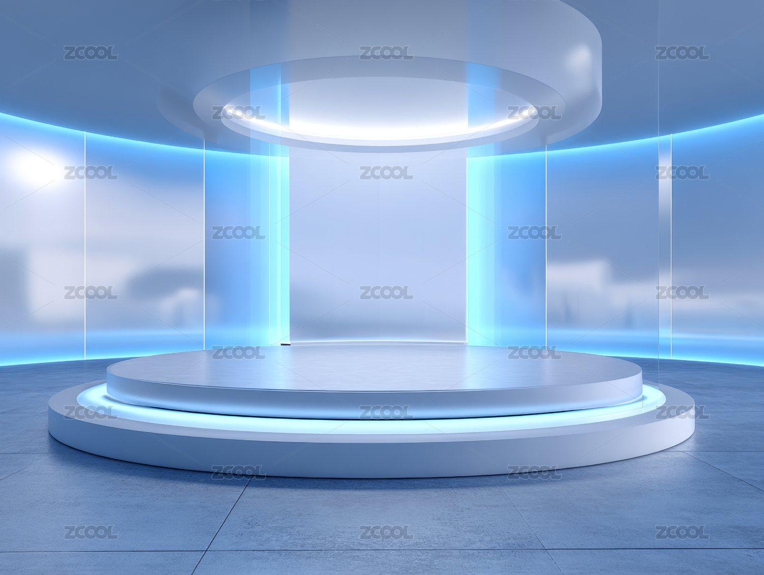 未来感,科技,展示台,金属,质感,灯光,现代,设计,圆形,平台