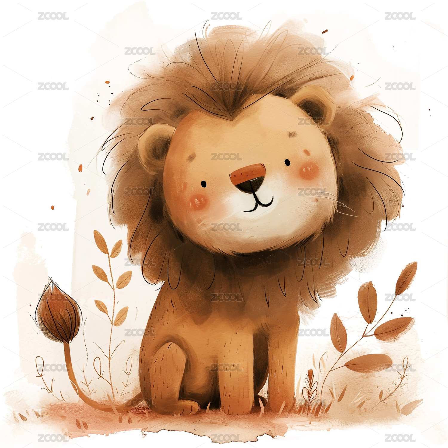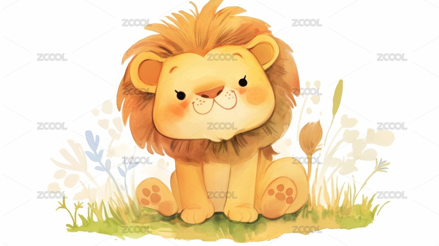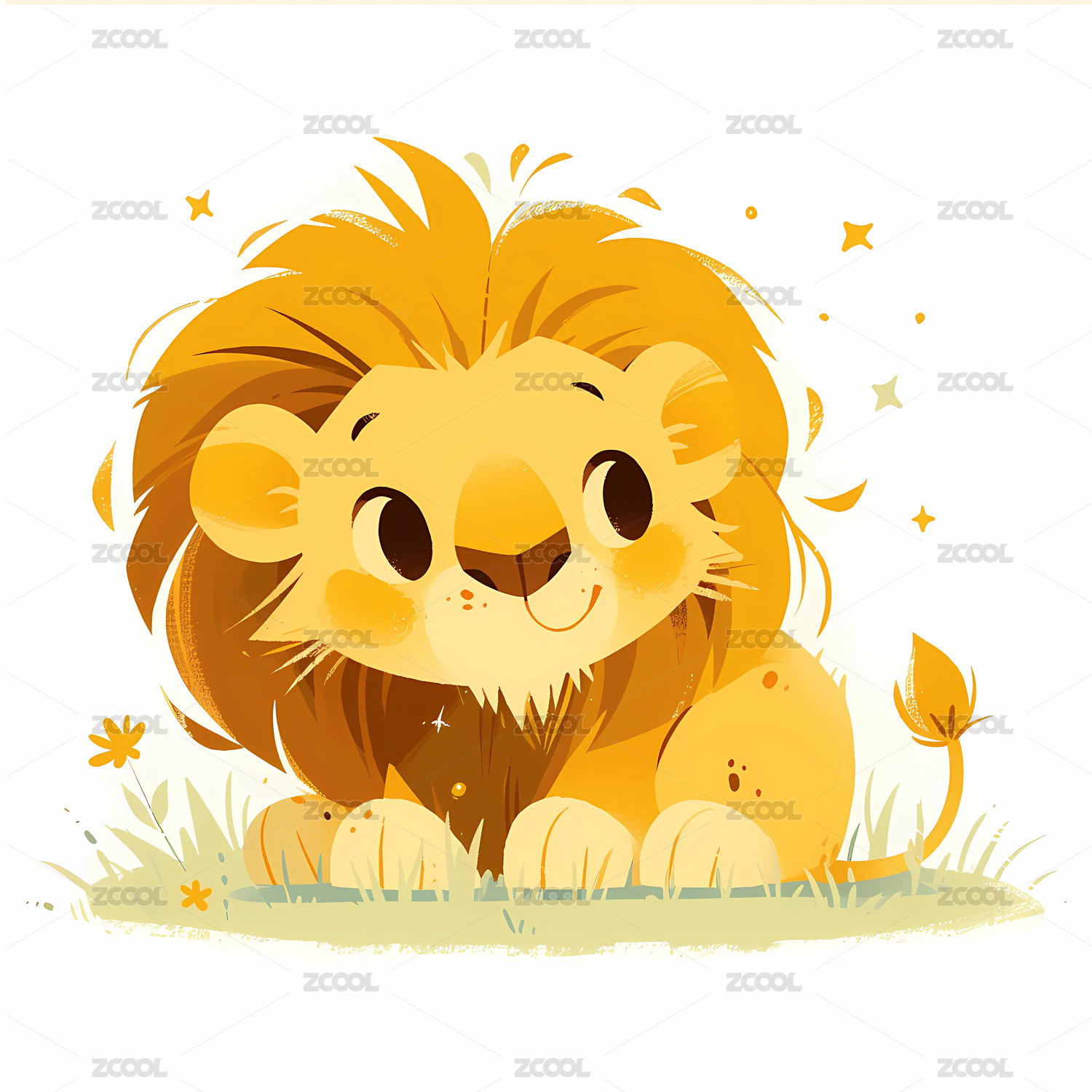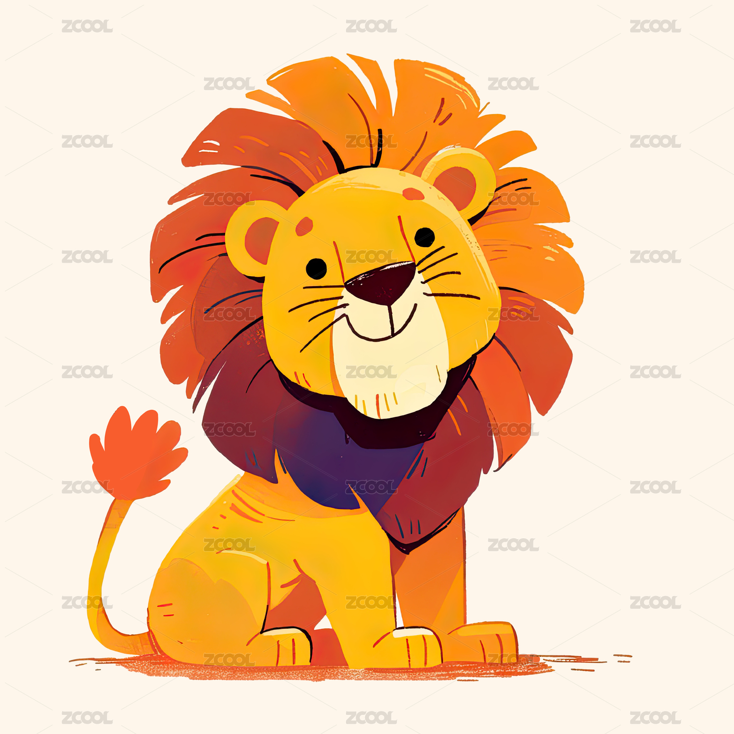 手绘卡通狮子插画
