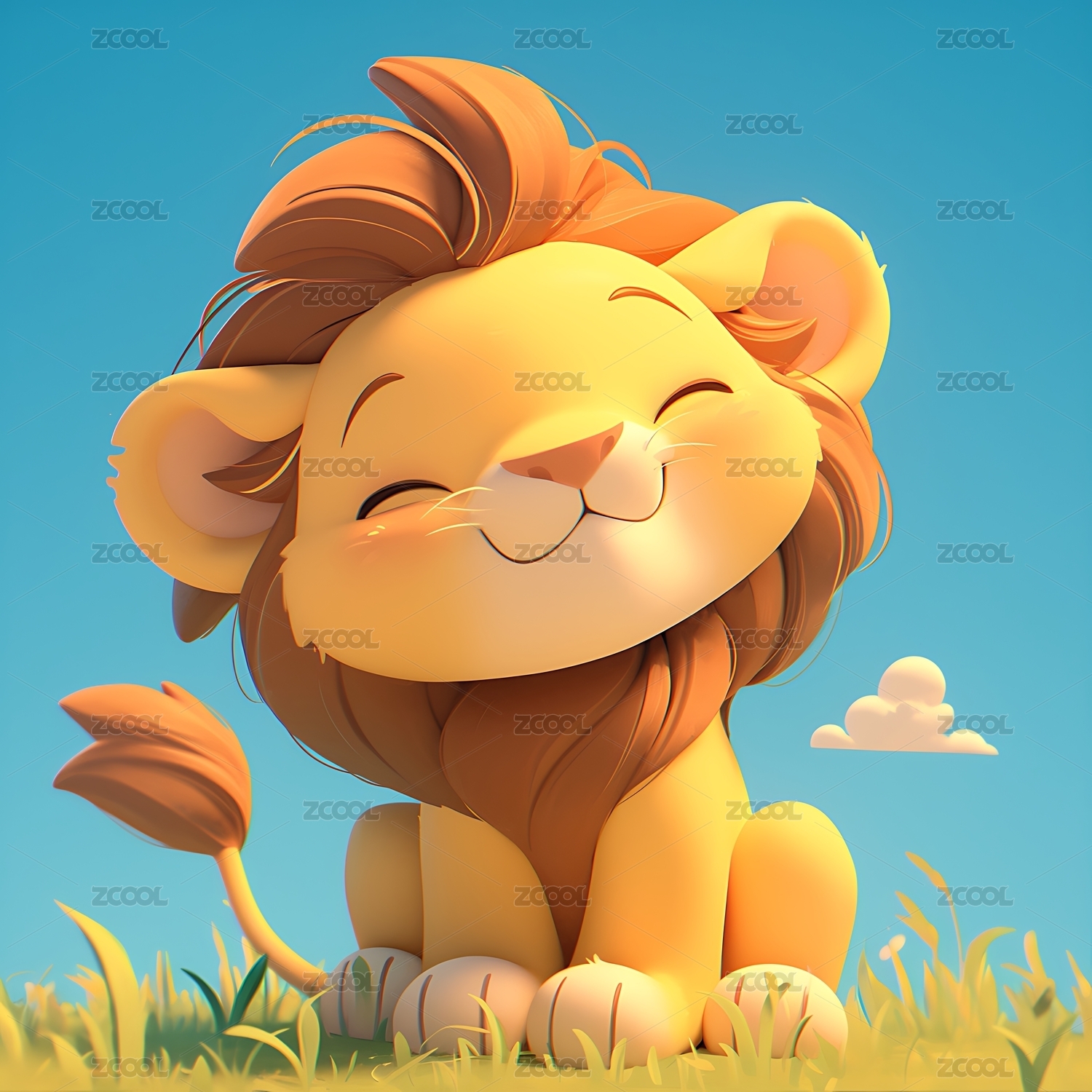 可爱微笑的蓬松小狮子