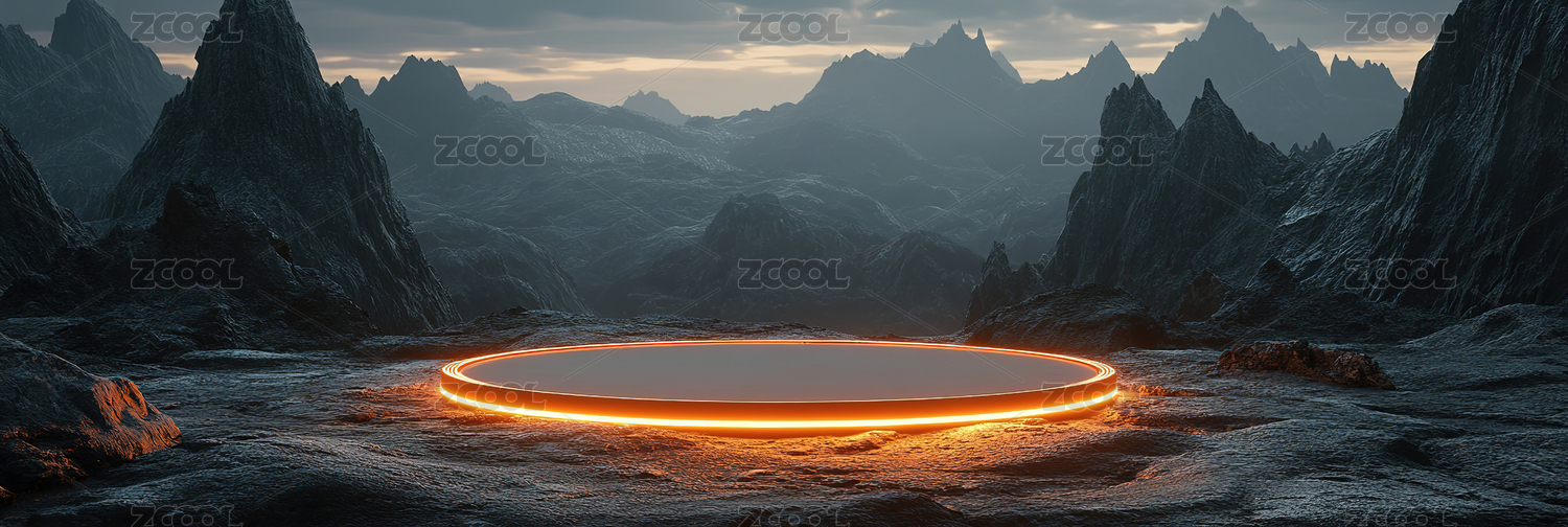 沙漠戈壁滩地形与发光科技平台产品展台背景
