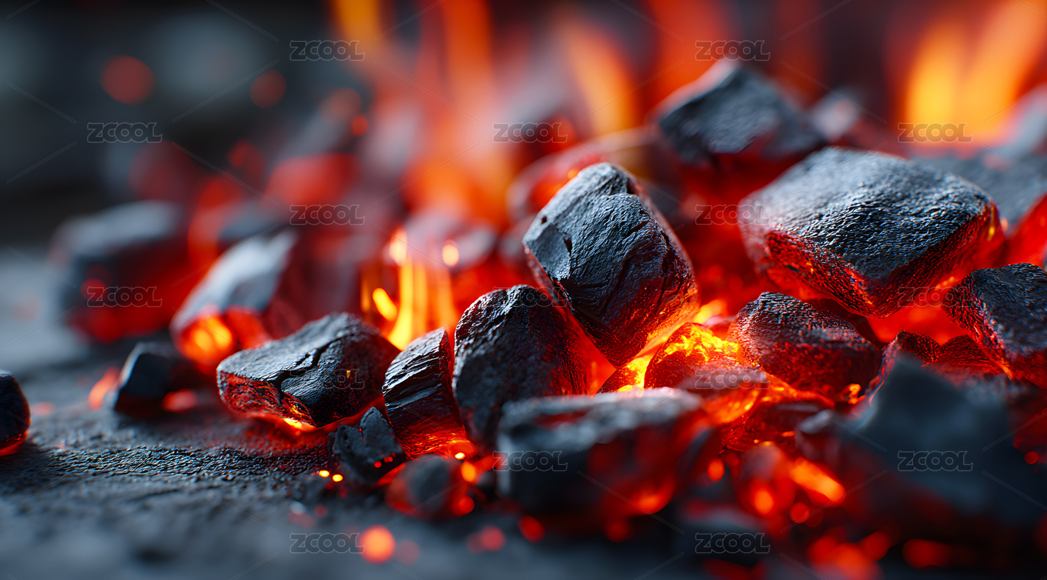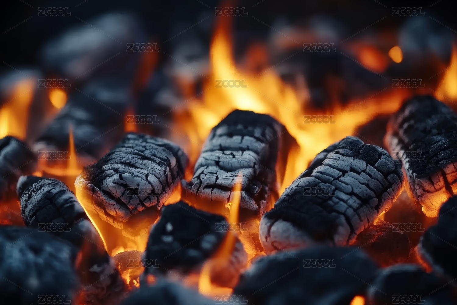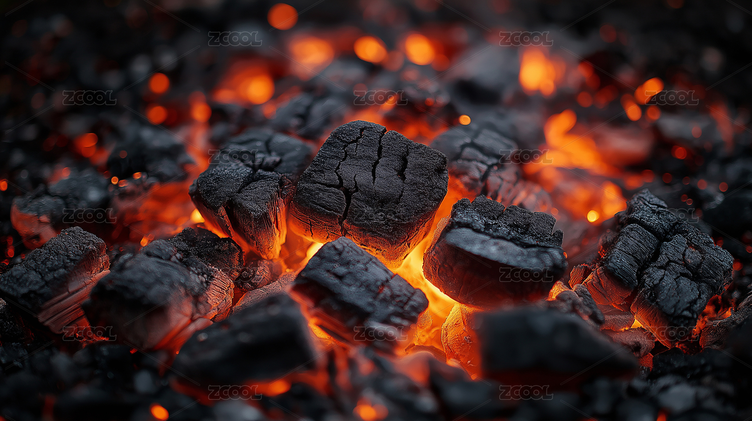 户外,黑色,明亮,红色,炭火,燃烧,火焰,高温,热量,灰烬