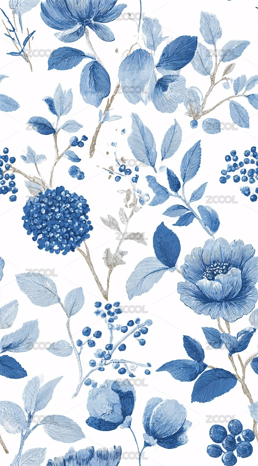 蓝色,纹理,质感,背景,花朵,白色,浆果,装饰,叶子,造型