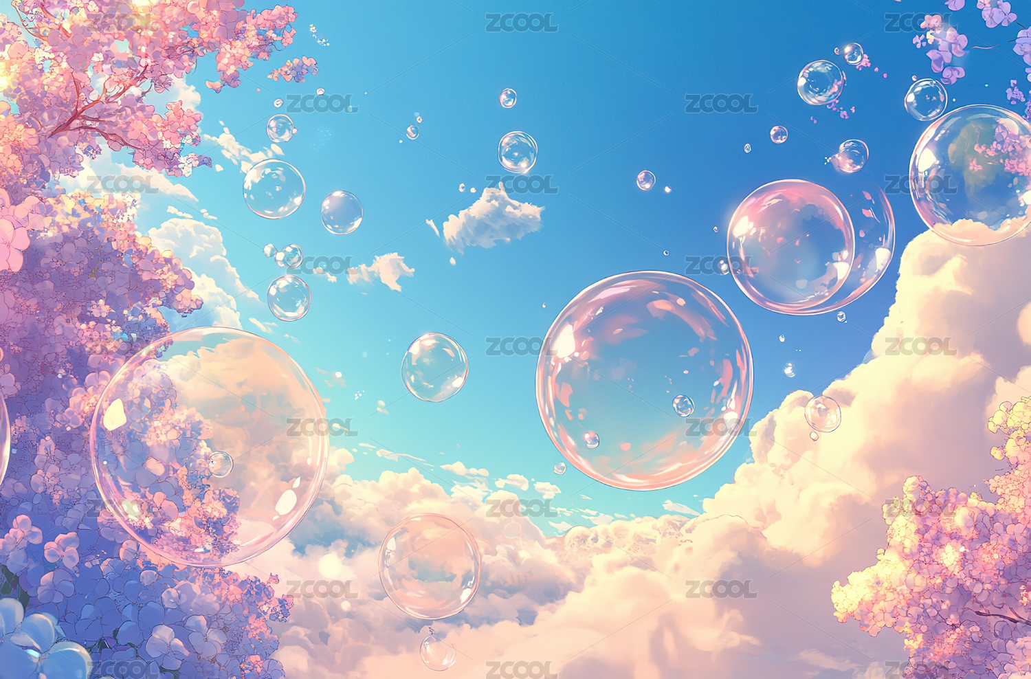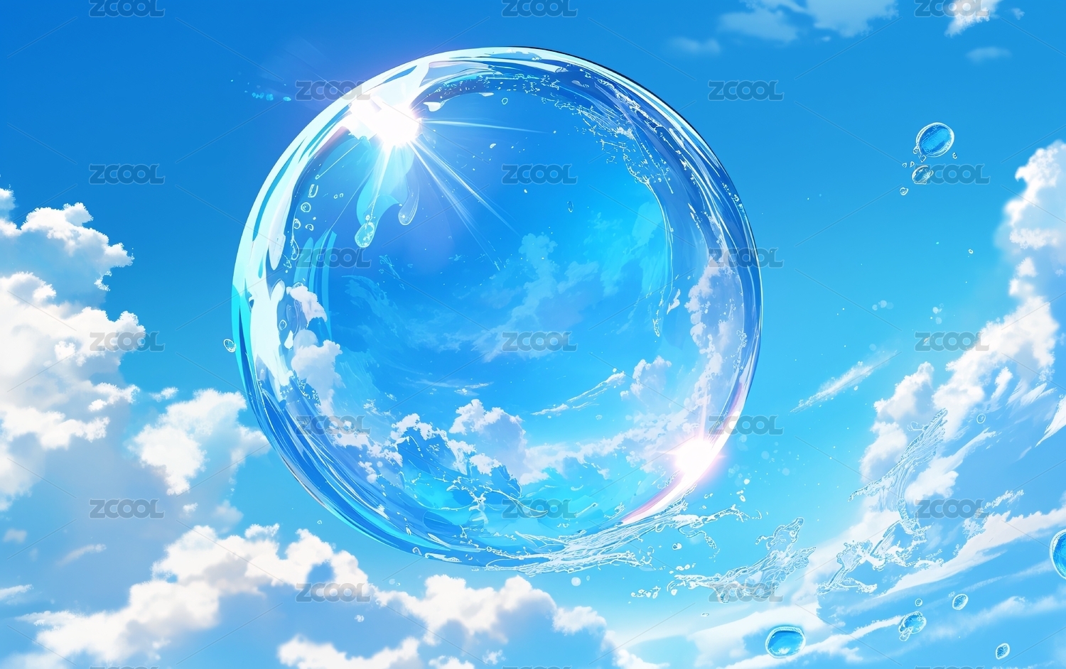 山峦,泡泡,田园,绿地,蓝天,白云,湖泊