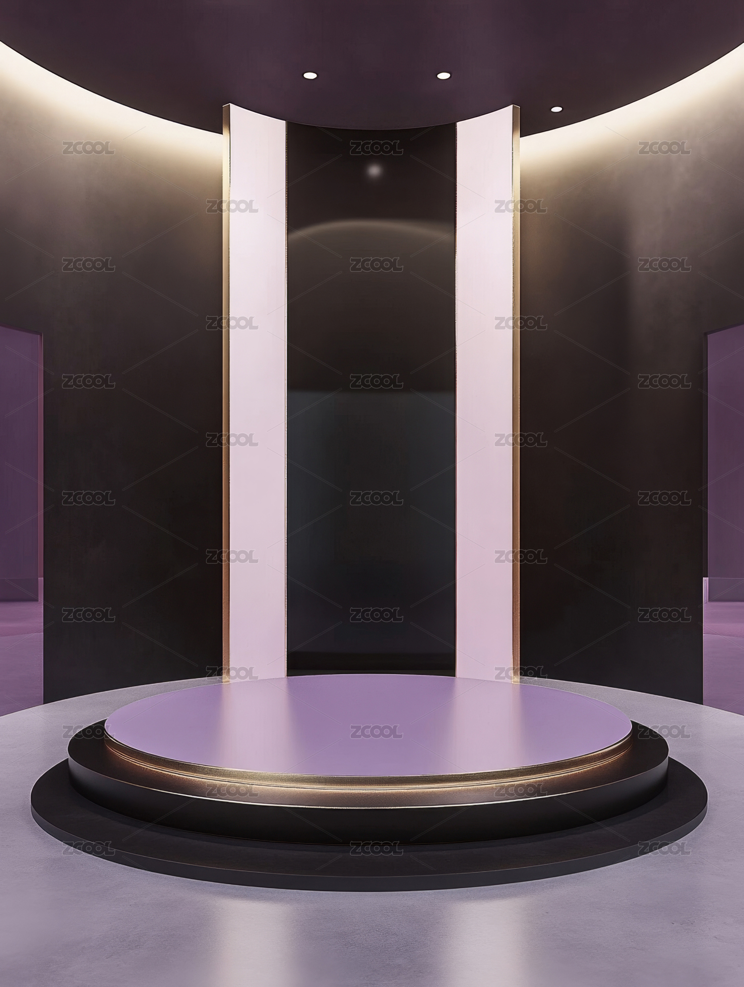 展示台,圆形,灯光,现代,简约,室内,设计,金色,边框,粉色