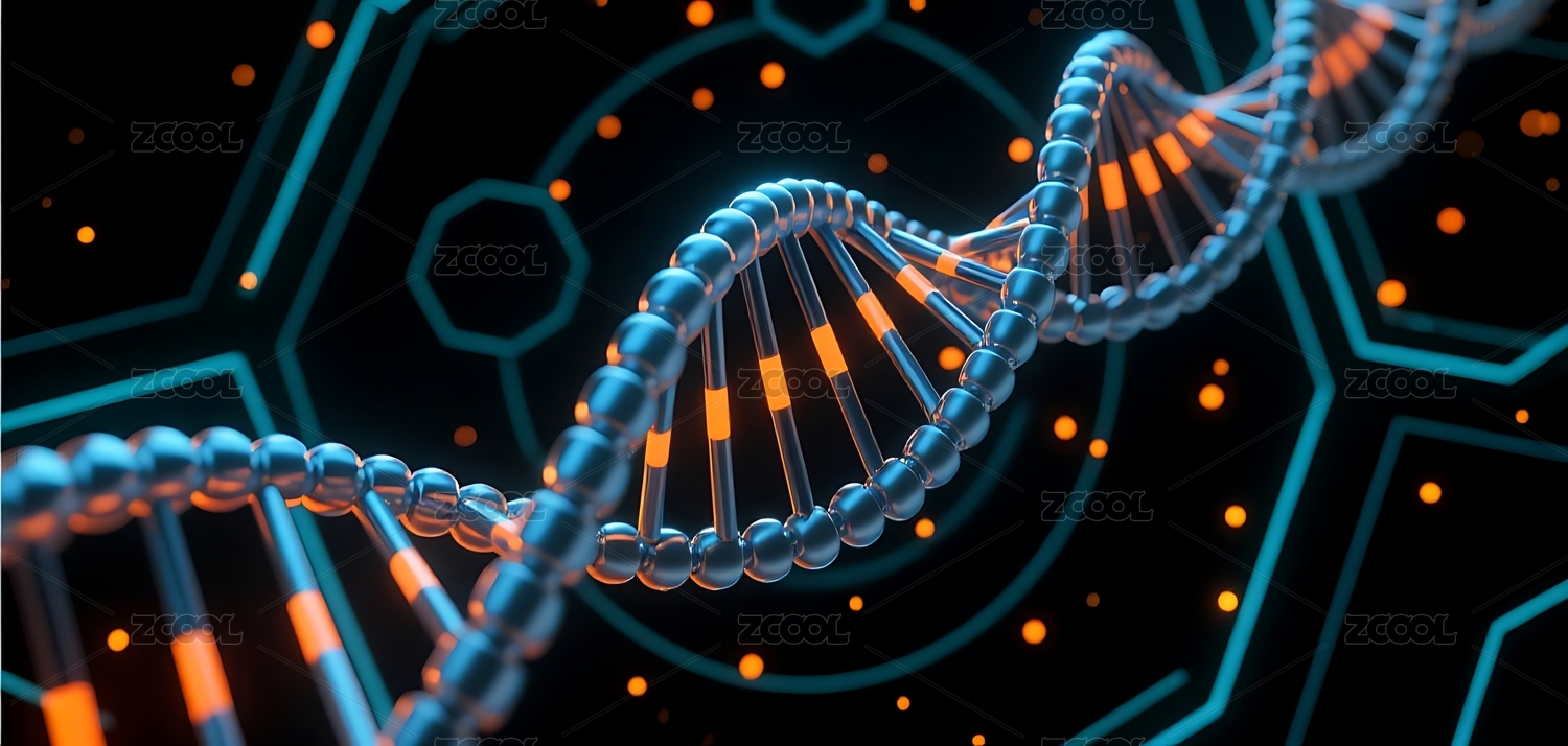 蓝色DAN螺旋分子结构发着橙色的光背景