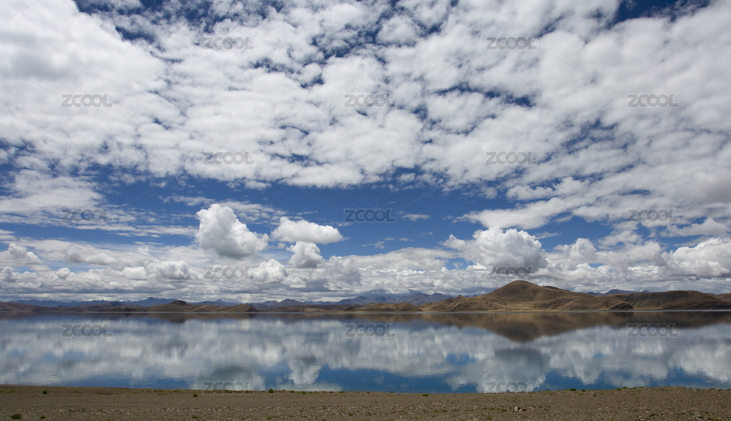 甘孜州康定塔公草原蓝天白云雪山水面光影