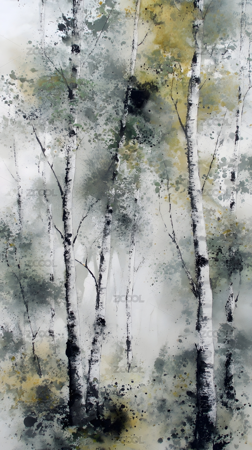树林,白桦林,春天,绿色,粉色,油画,艺术,壁纸,装饰画,背景