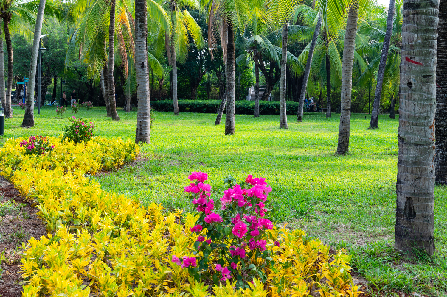 粉色,花朵,花海,公园,绿植,树木,自然风光,户外,植物,花卉