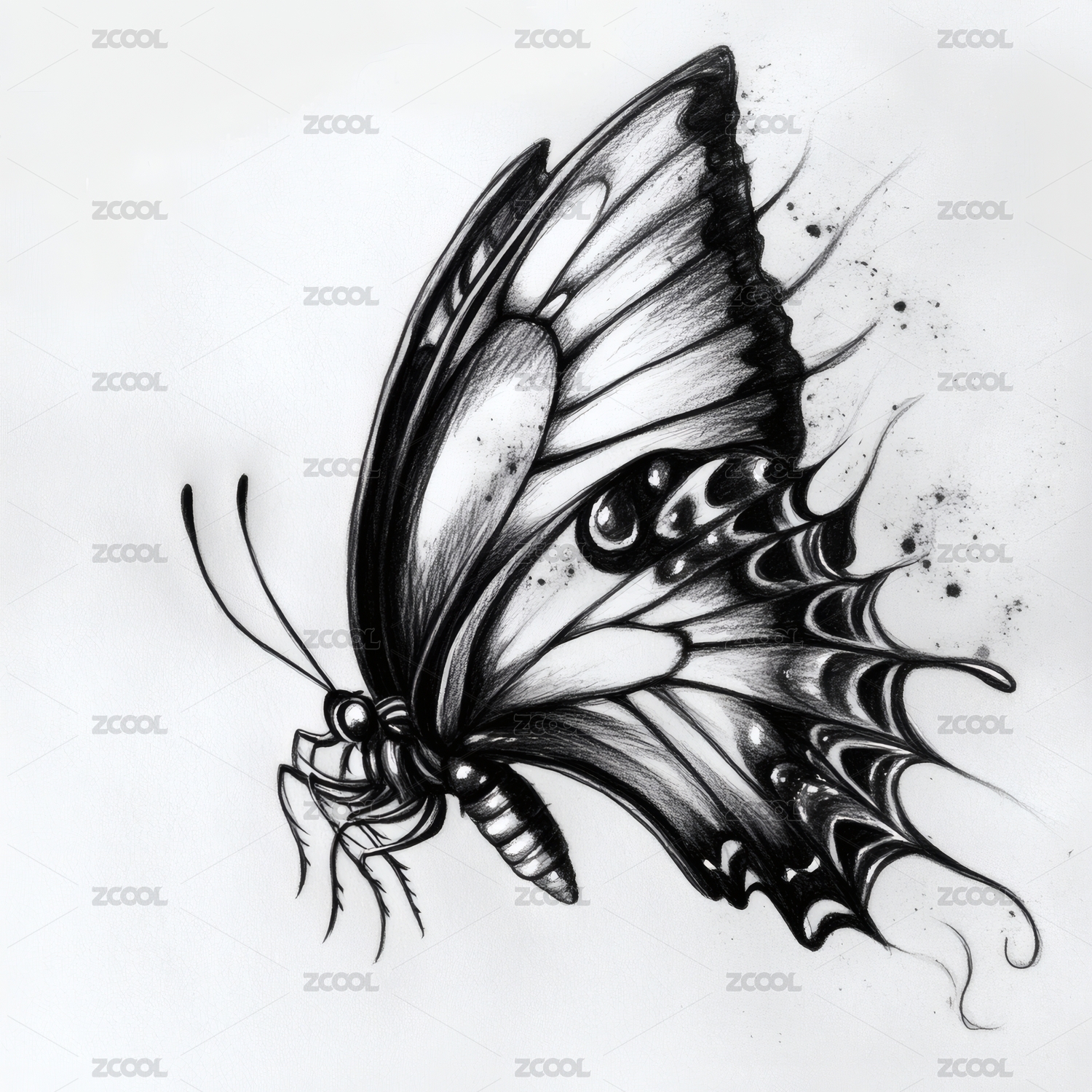 蝴蝶,翅膀,线条,纹理,绘画,黑白,轮廓,形态,艺术,笔触