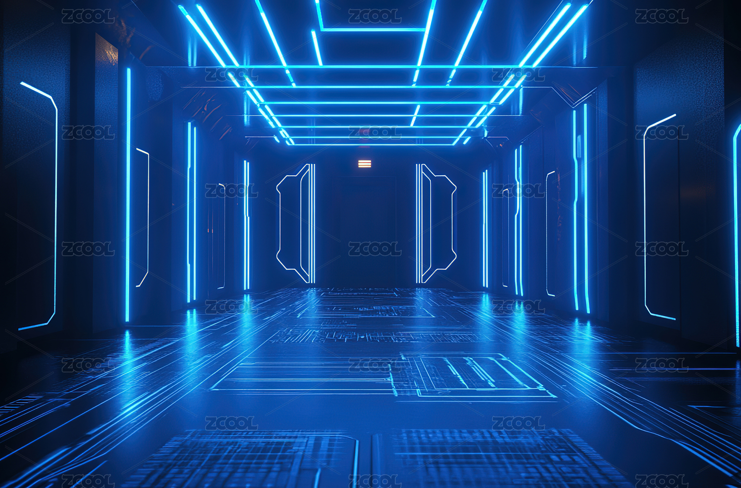 充满未来主义色彩科幻走廊灯光璀璨