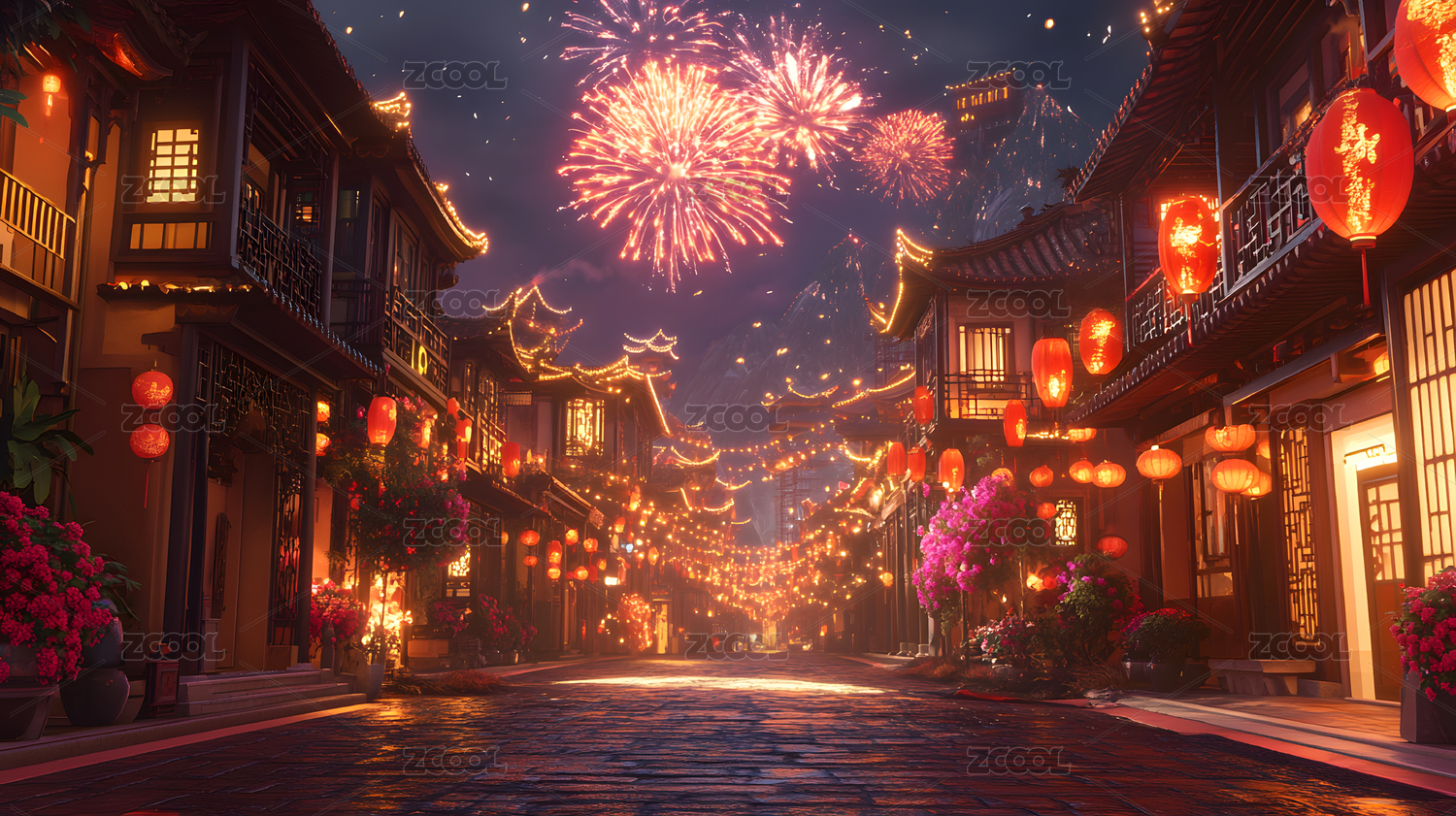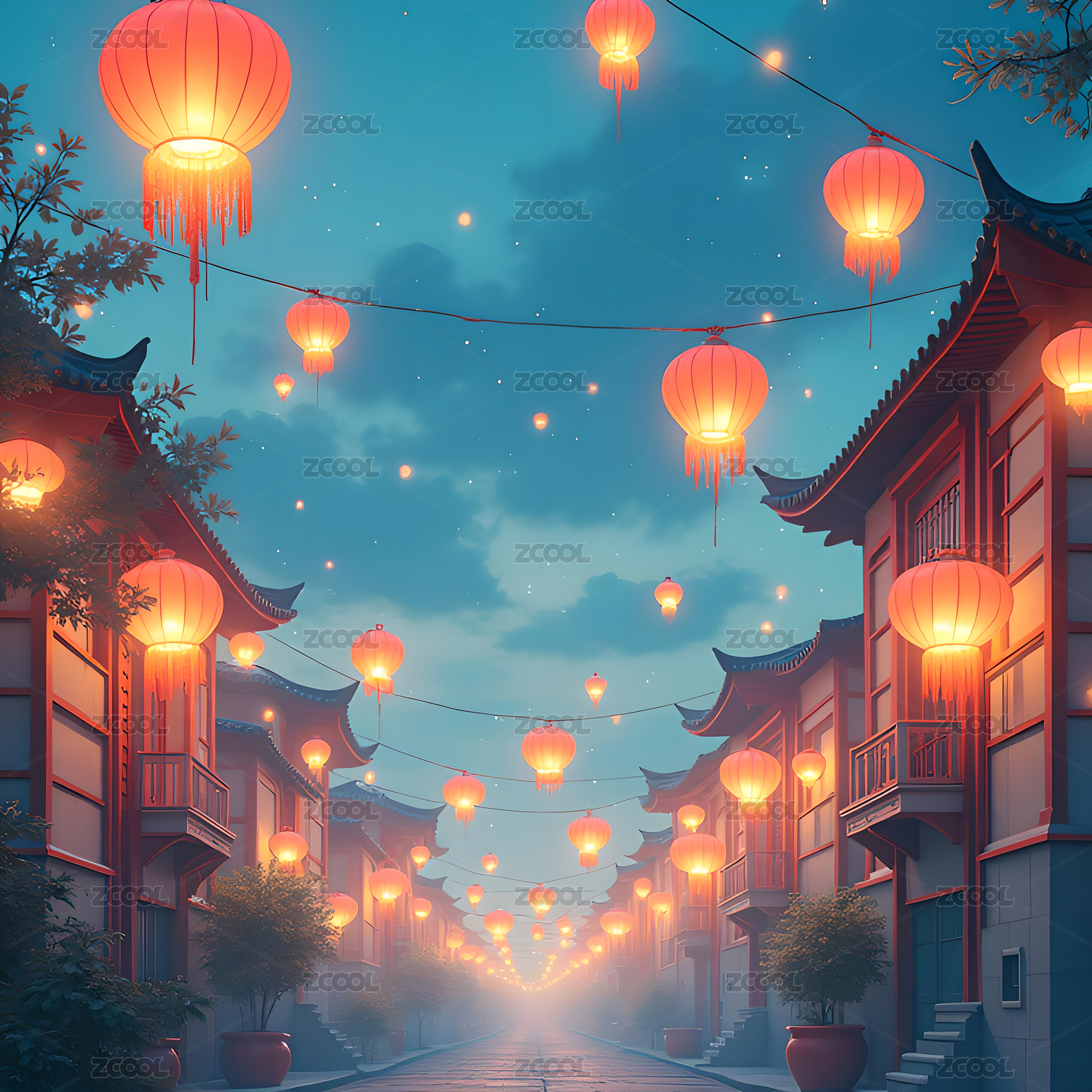 灯笼,夜晚,街道,建筑,灯光,节日,装饰,传统,红色,氛围