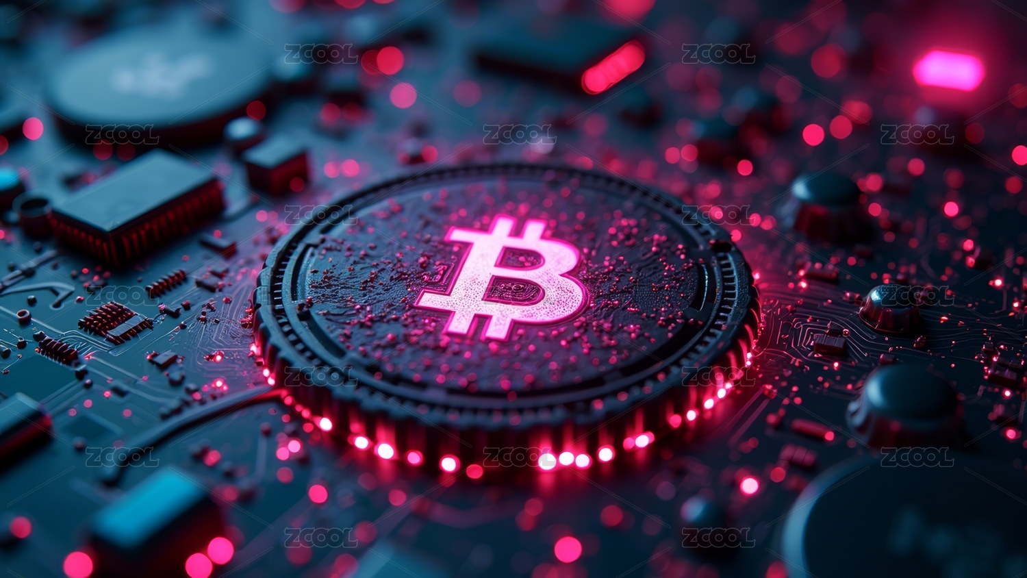 电路板上的比特币,加密数字货币概念