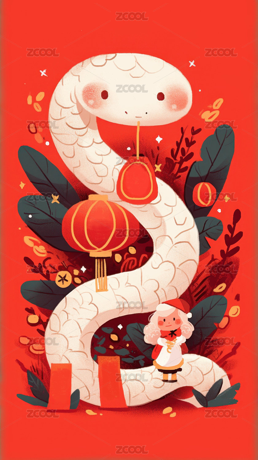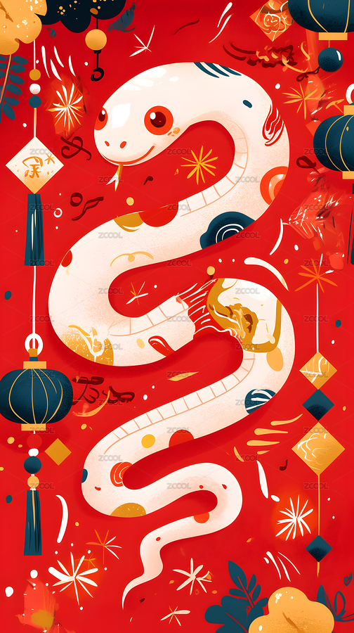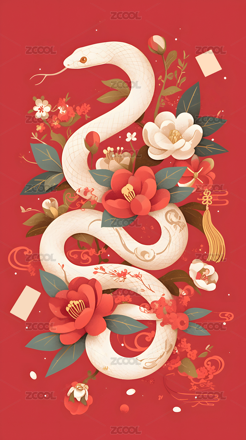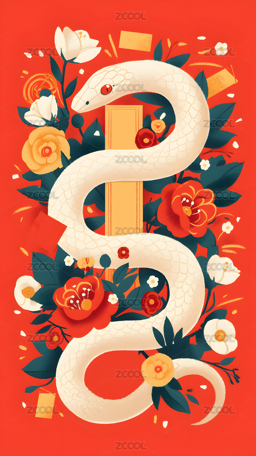 插画,艺术,中国风,背景,新年,蛇,祥瑞,节日,庆祝,红色