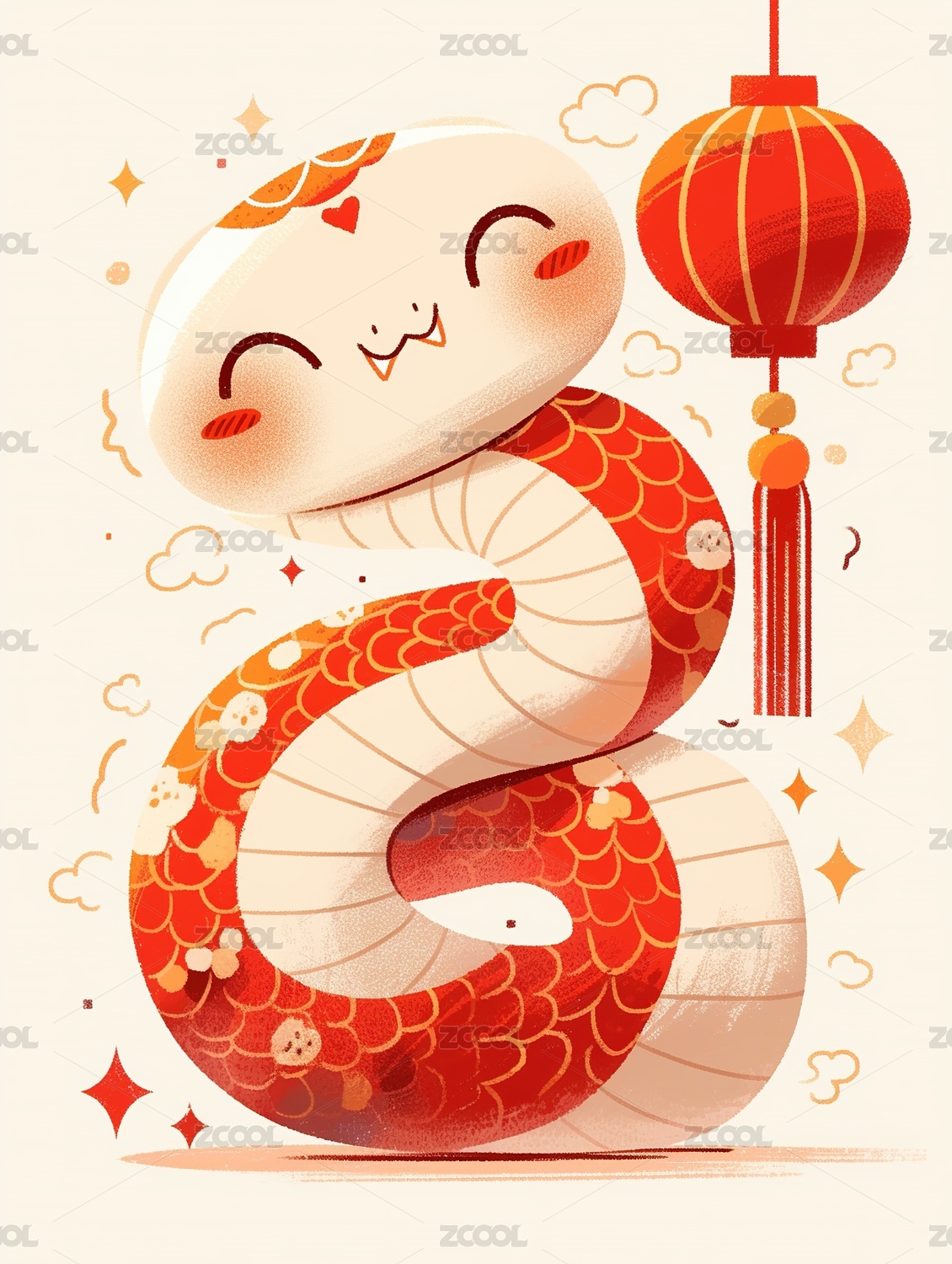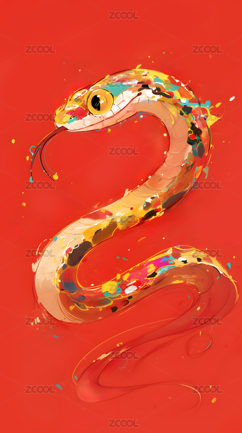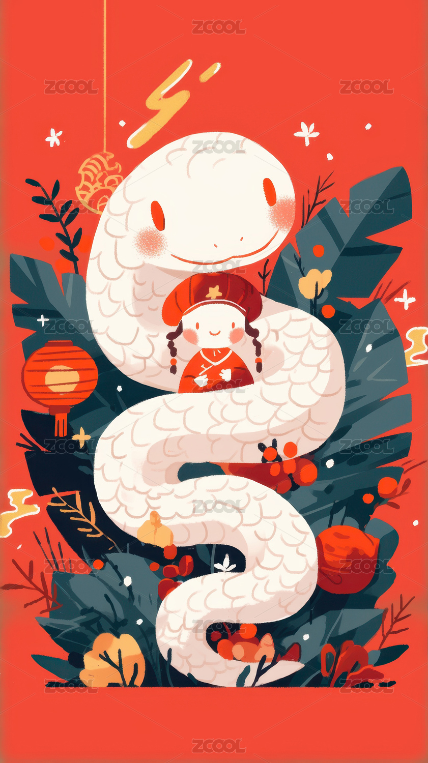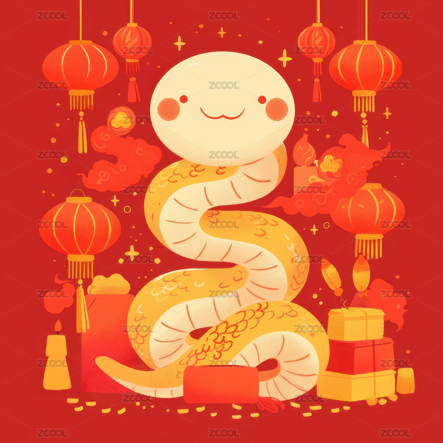 插画,艺术,中国风,背景,新年,蛇,祥瑞,节日,庆祝,红色