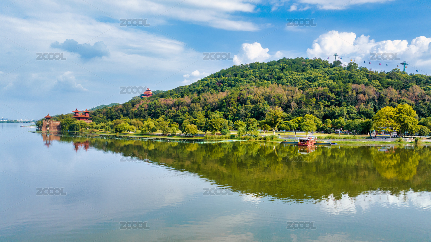 航拍中国湖南省衡阳市珠晖区酃湖公园
