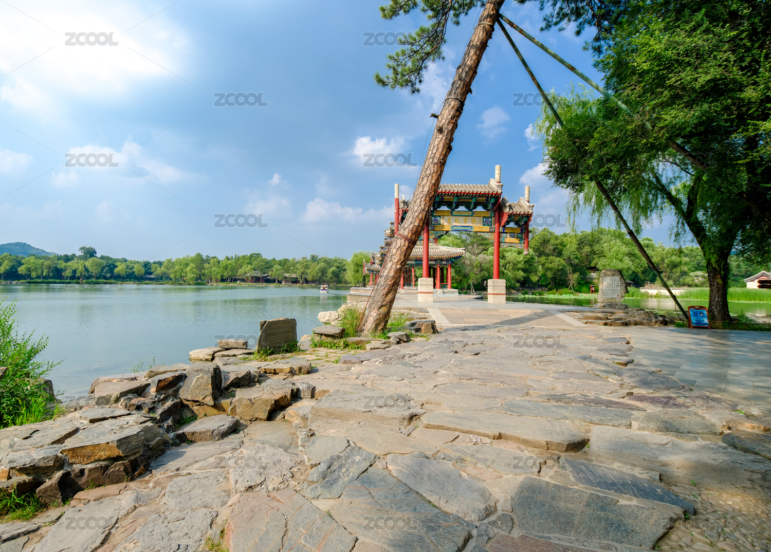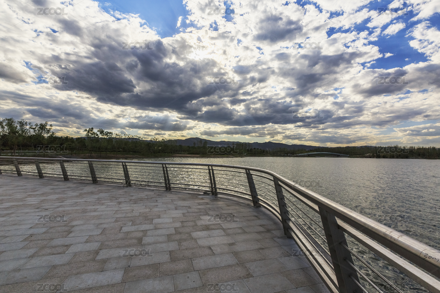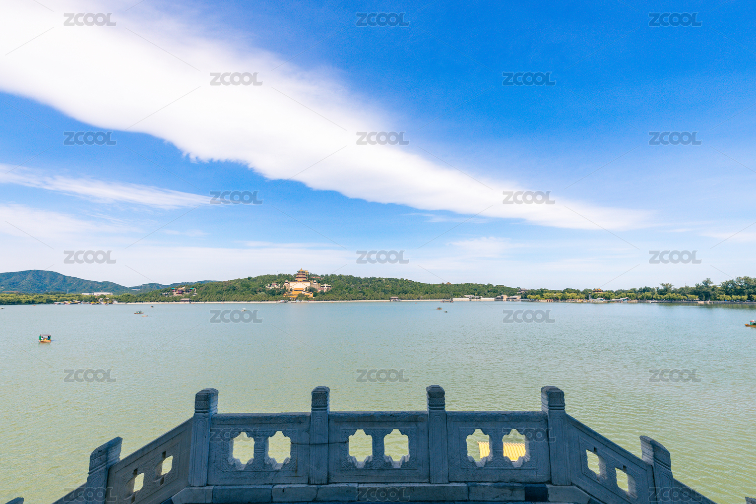 蓝天白云下的中国浙江宁波东钱湖湿地公园