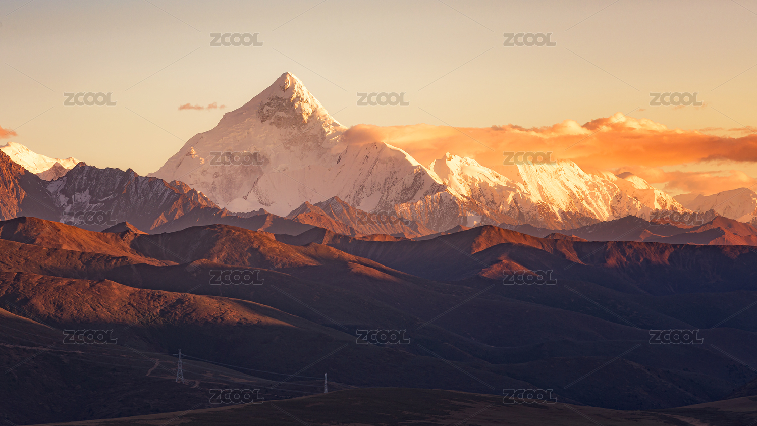 中国四川甘孜藏族自治州贡嘎山日照金山风光