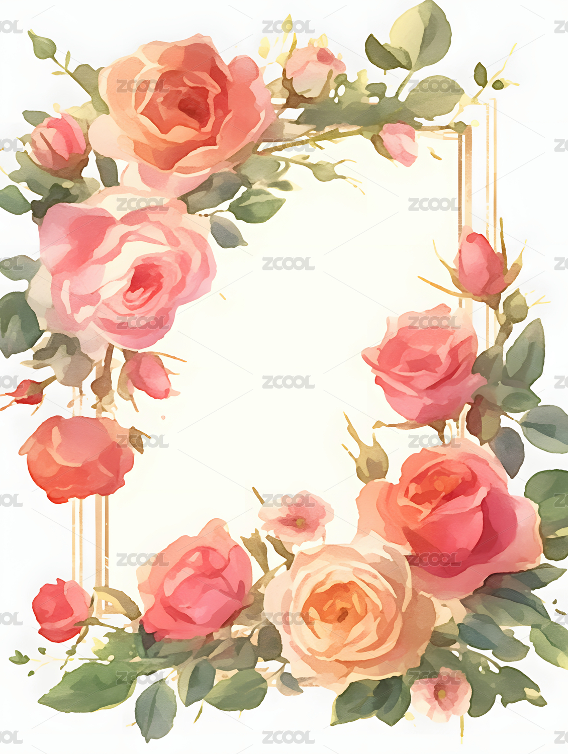 水彩玫瑰花卉边框设计