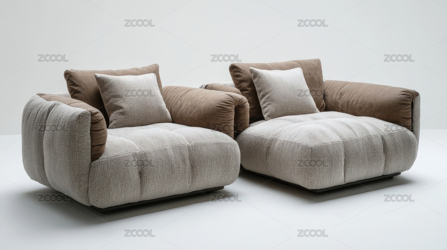现代土褐色组合沙发及边几