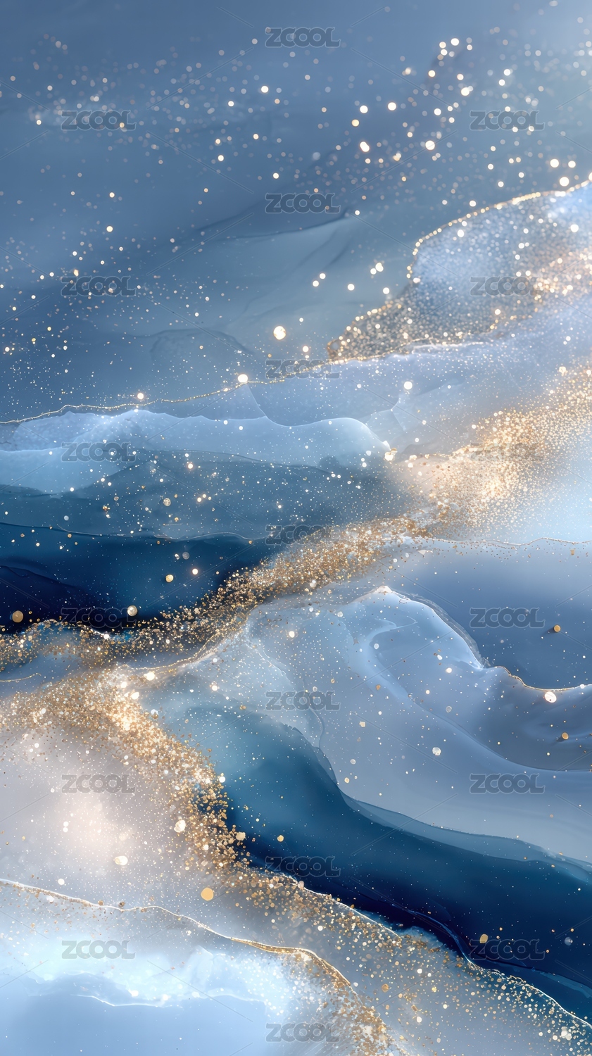 流光溢彩的蓝金艺术抽象图案