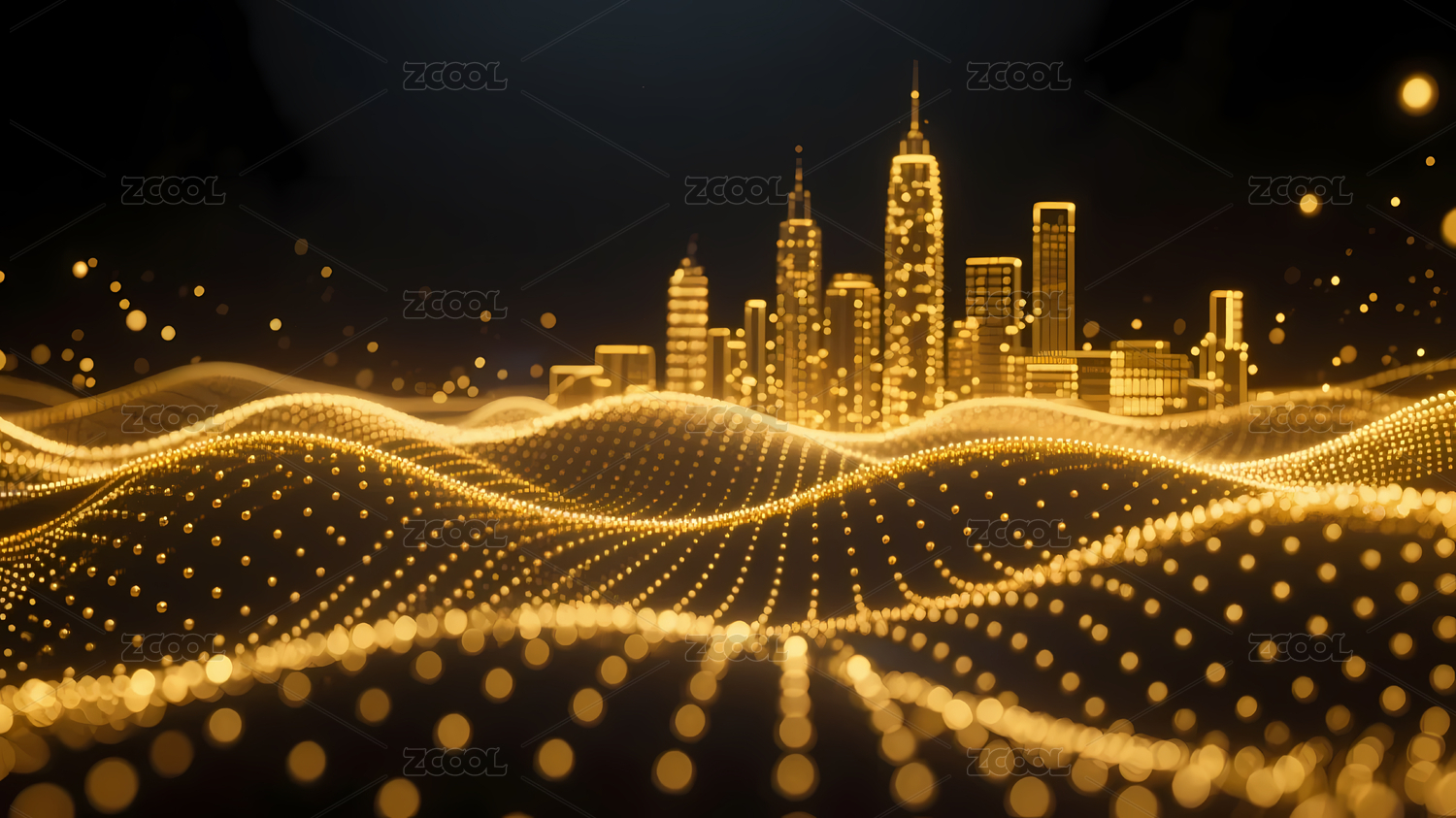 金色城市天际线波浪光点