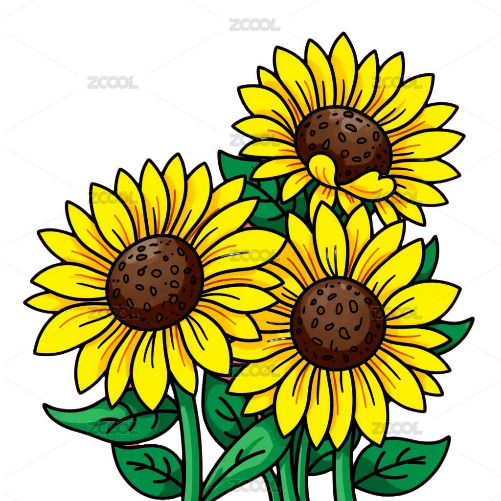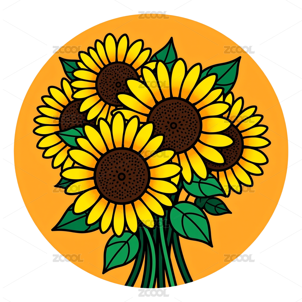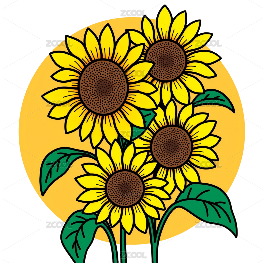 黑白黄相间的向日葵插画