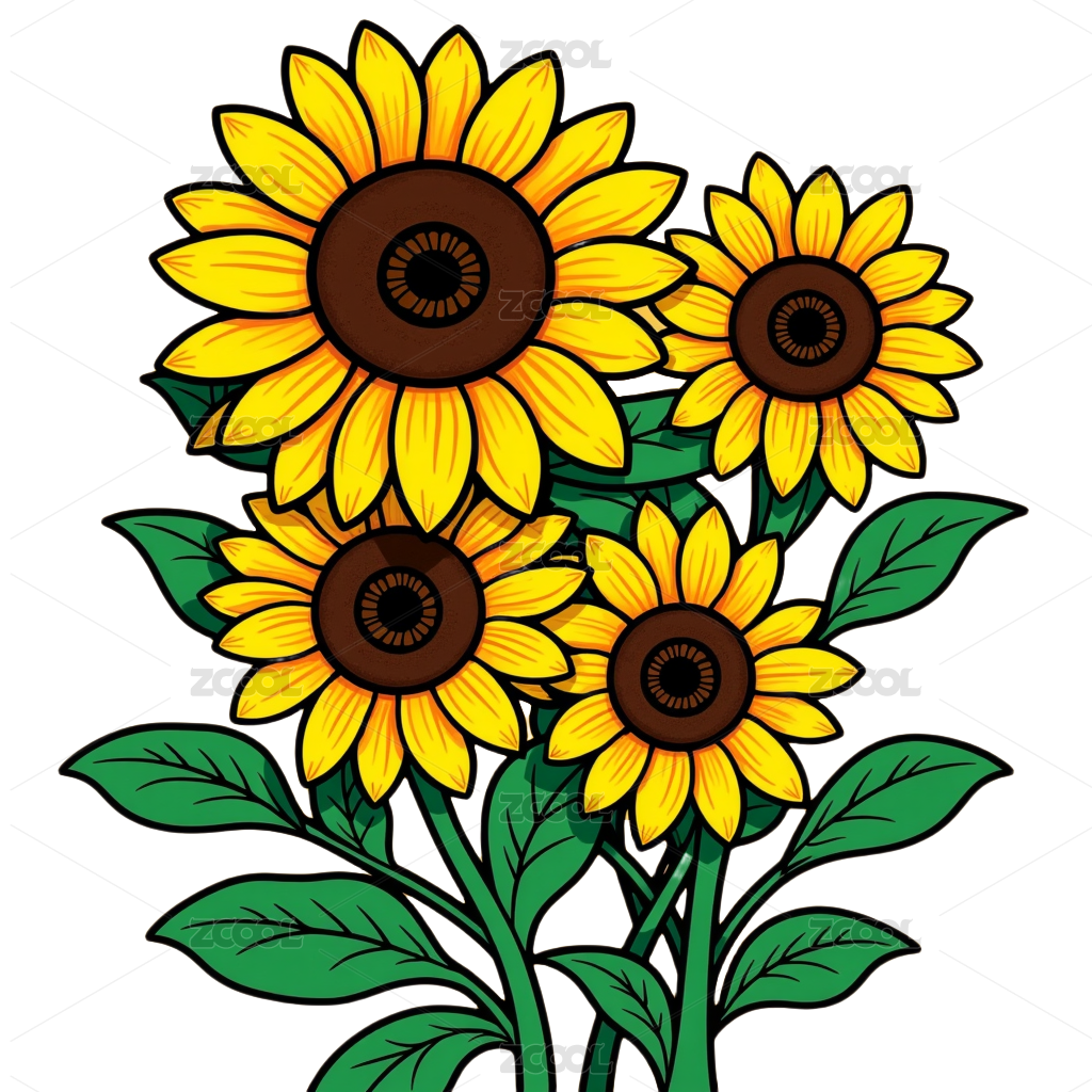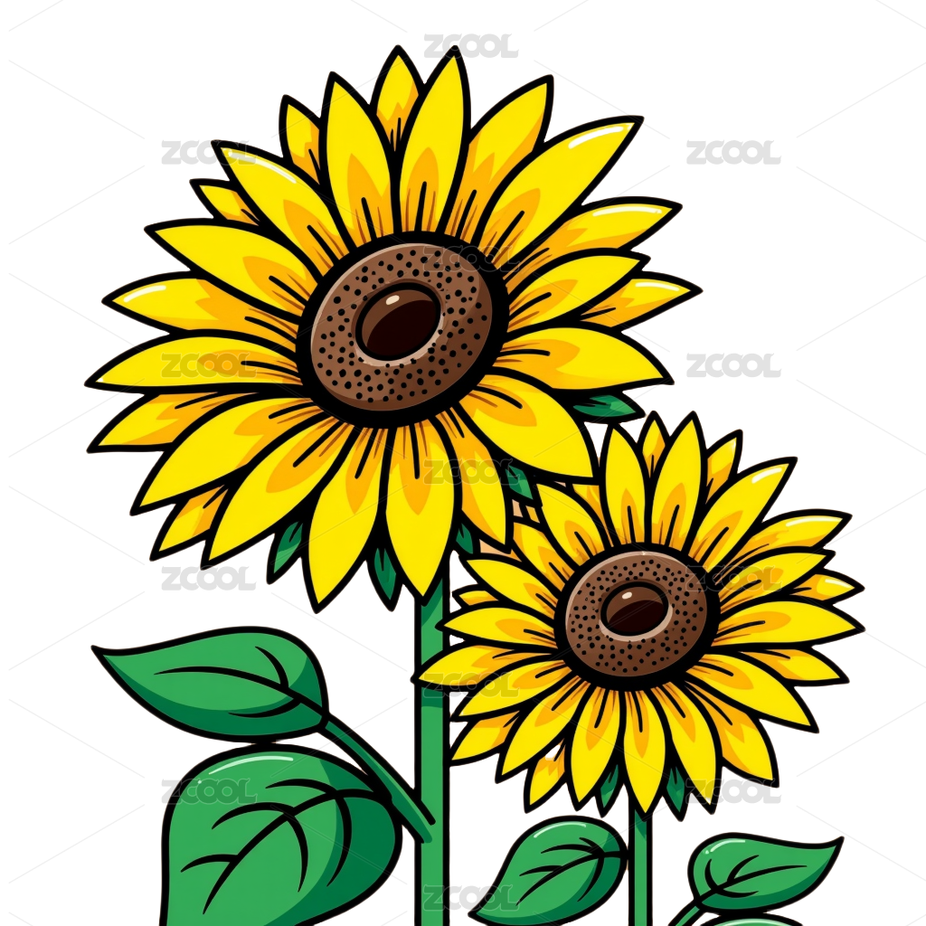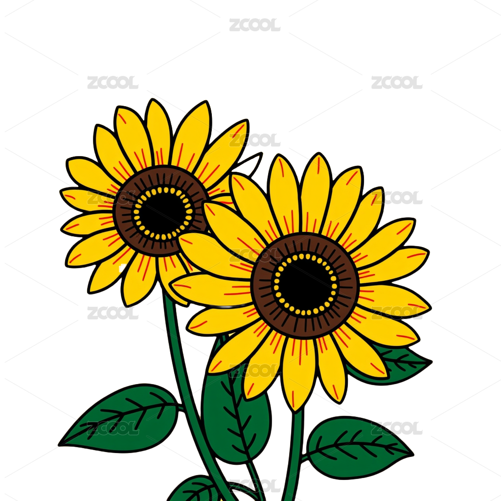 黑白黄相间的向日葵插画