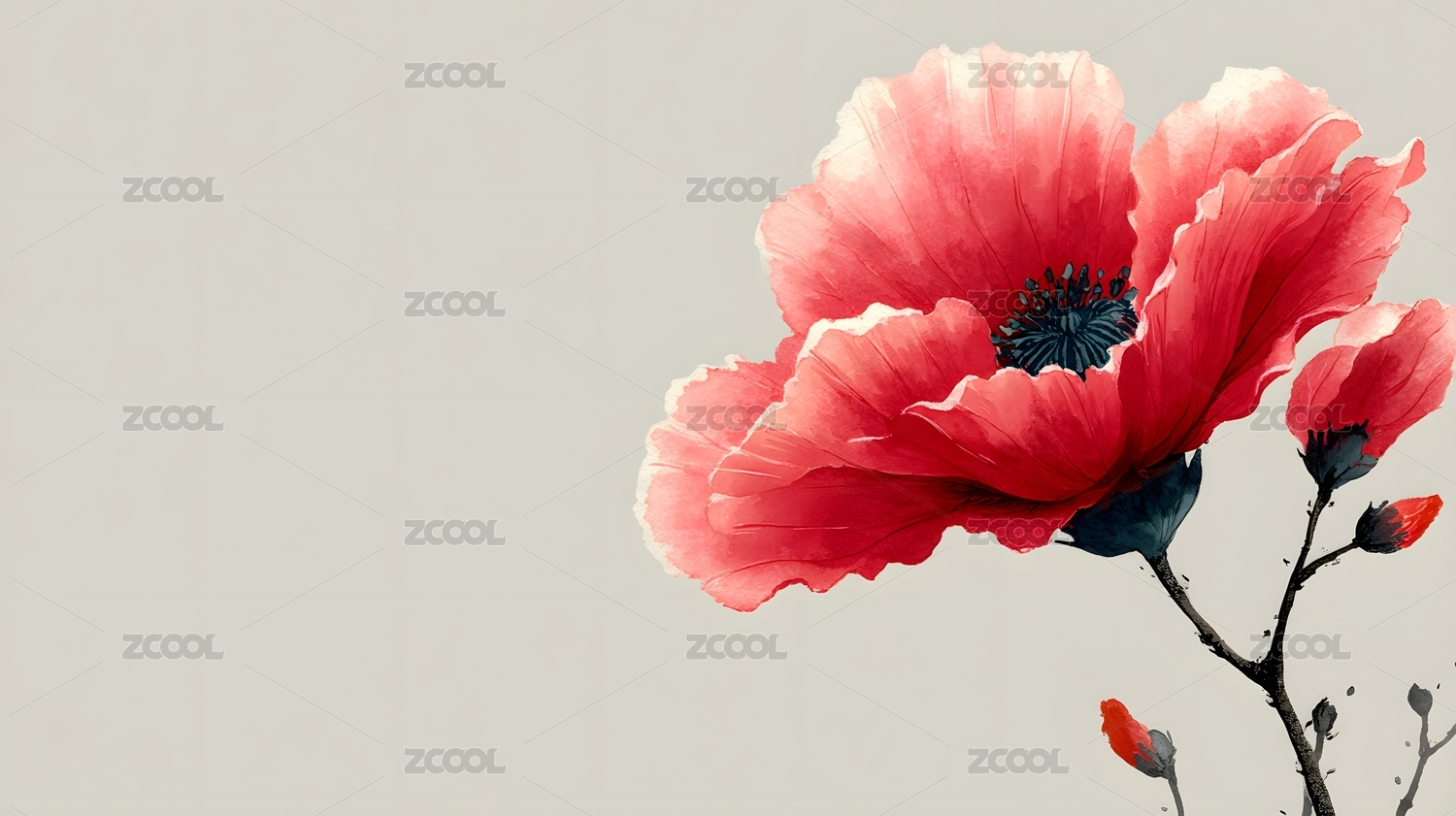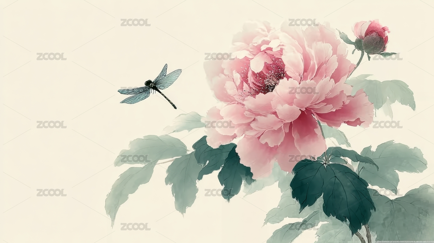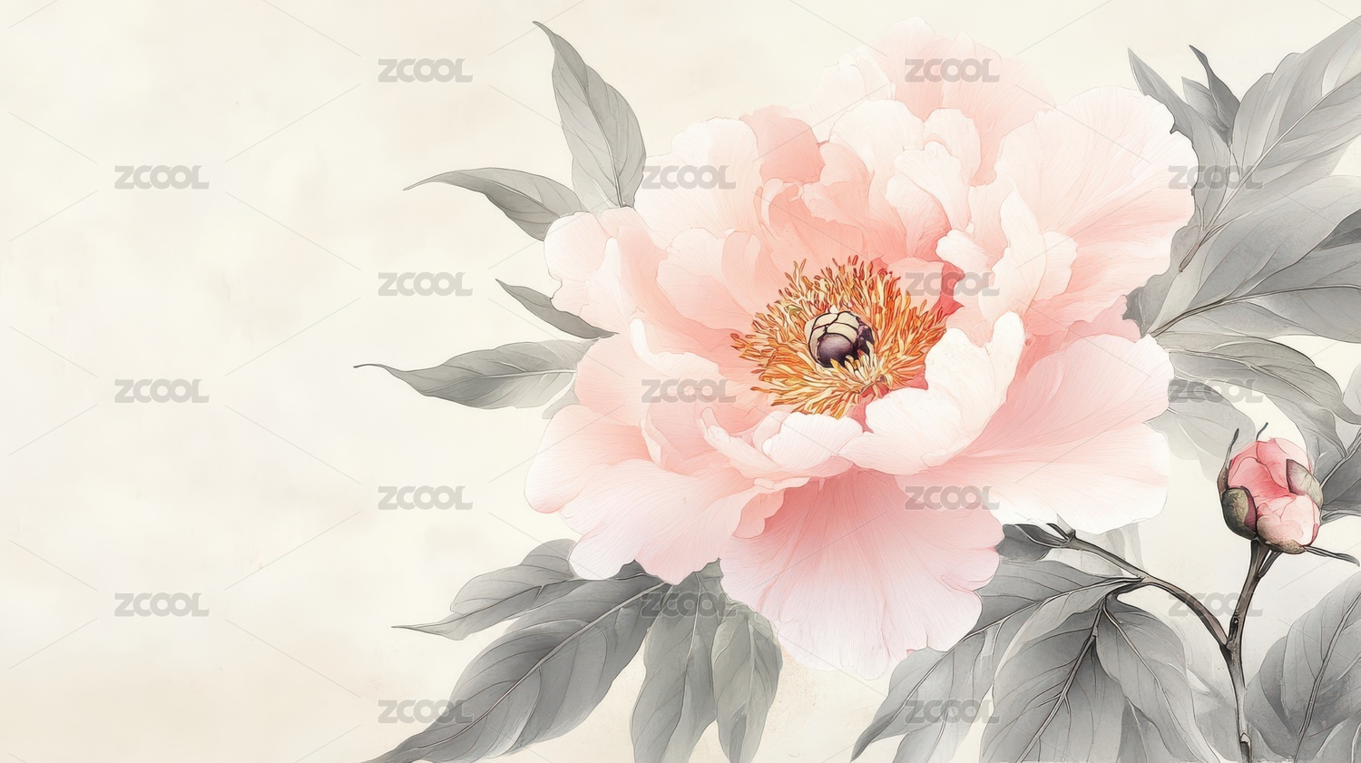 花朵,水墨,色彩,中式,传统,典雅,花蕊,枝叶,牡丹,蜜蜂