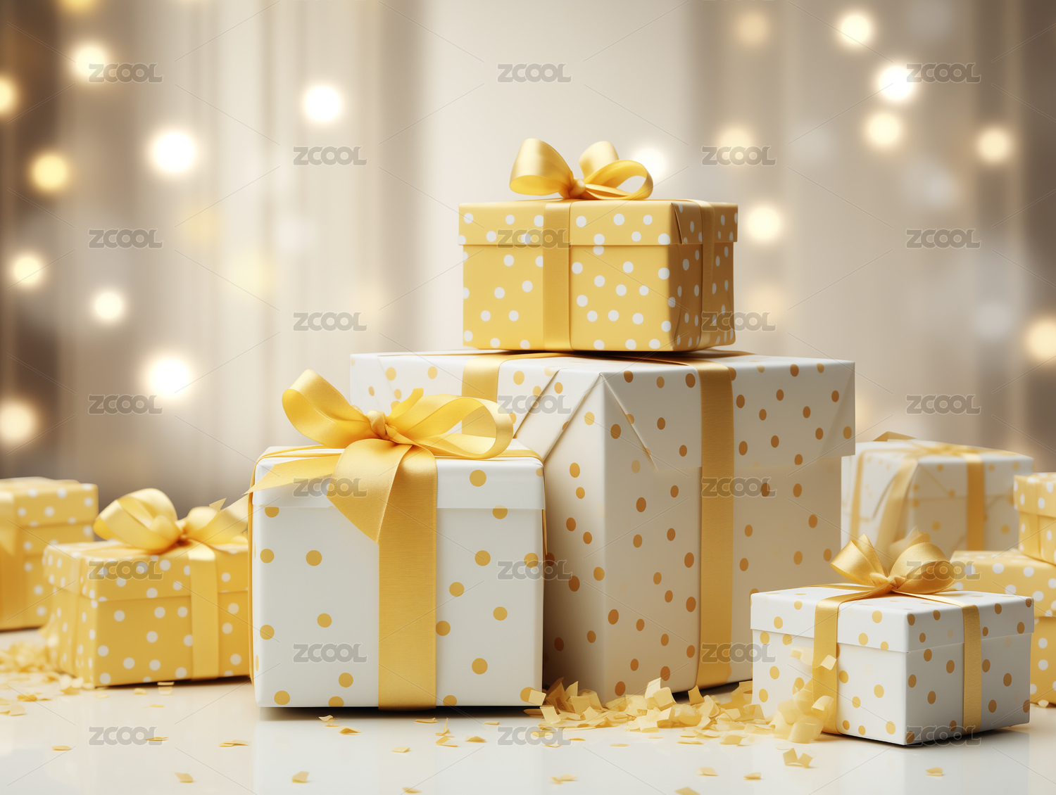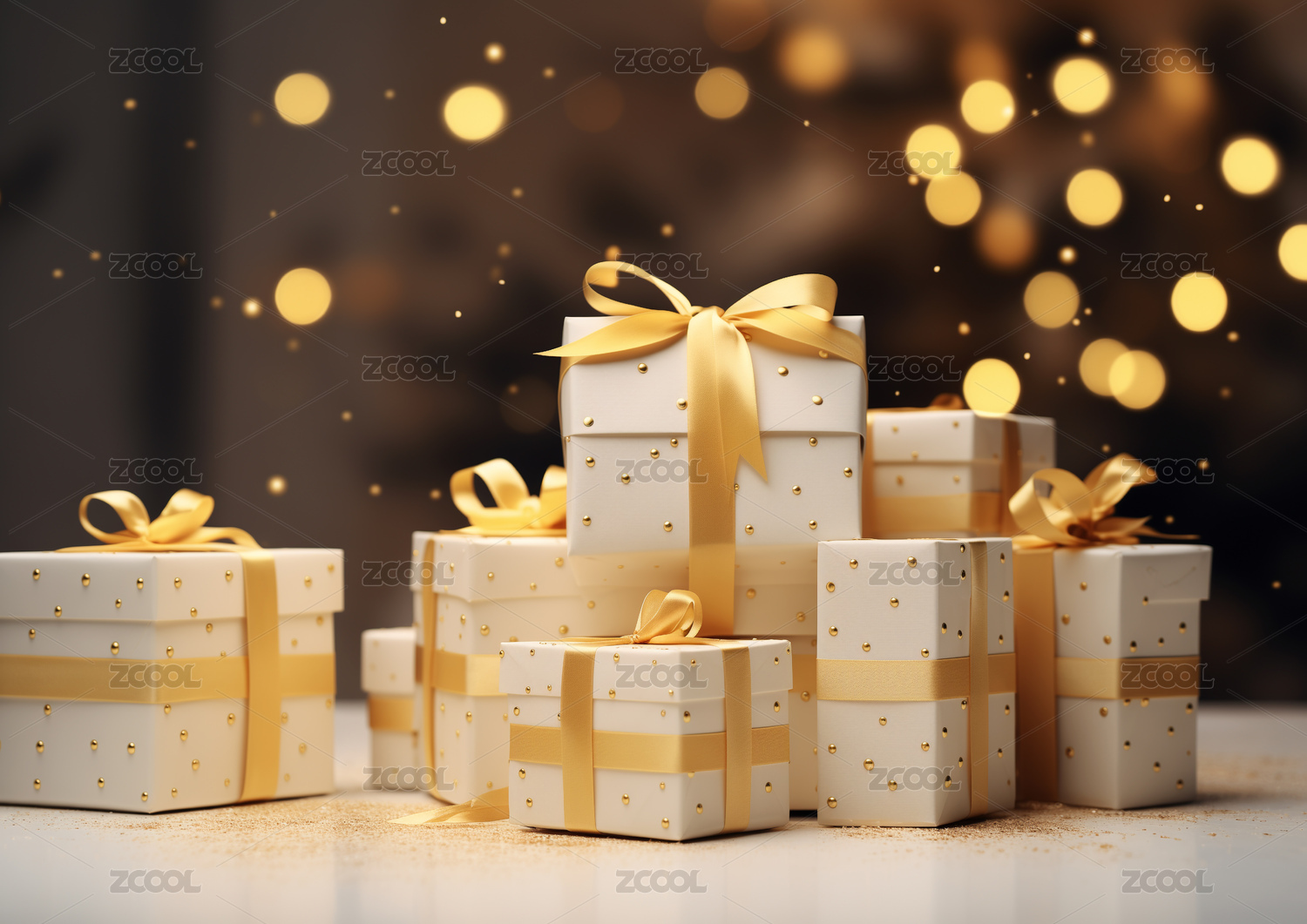 礼物盒,金色,蝴蝶结,白色,背景,丝带,闪光,反光,堆叠,光斑桌面