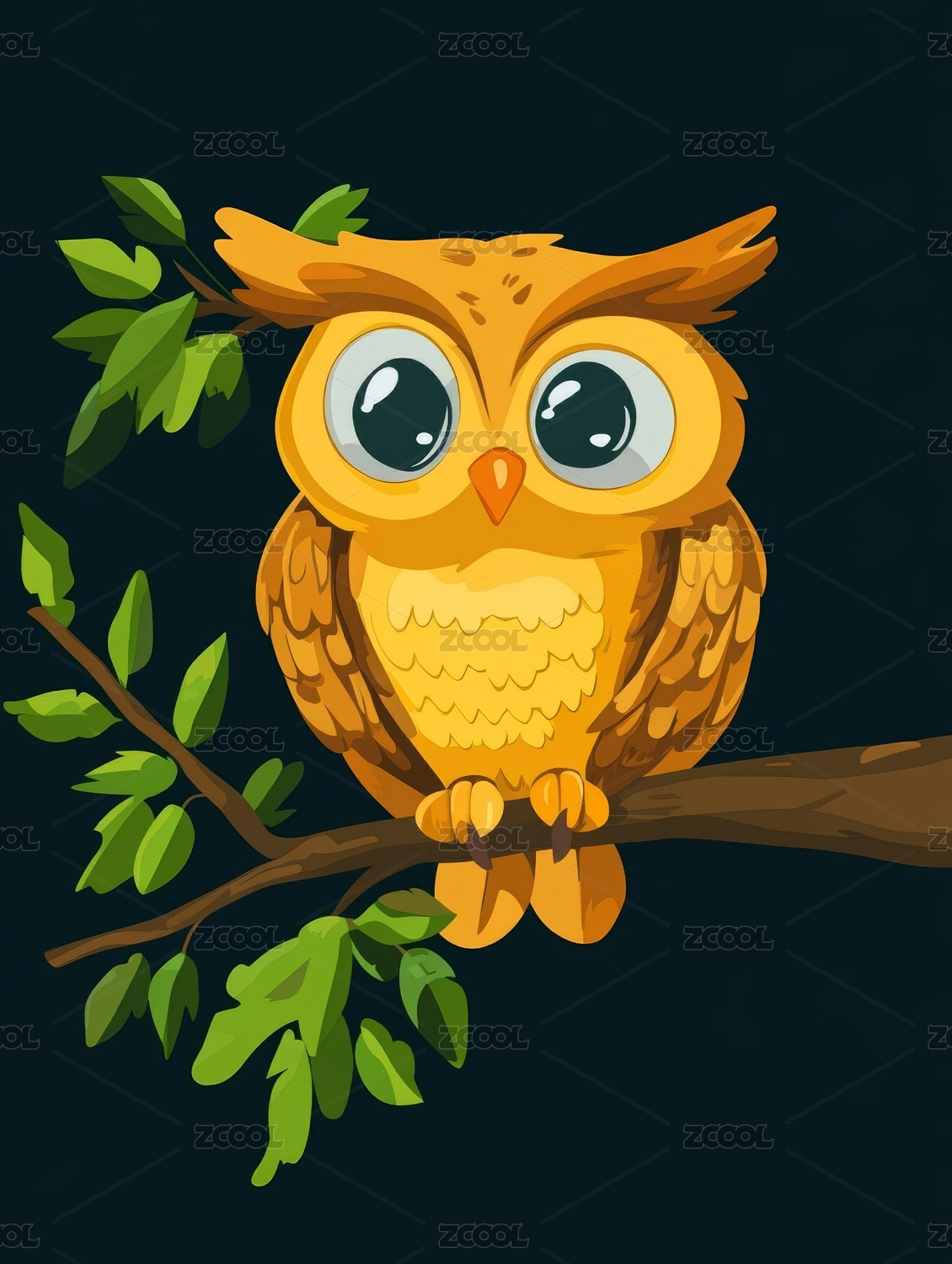 背景,树枝,花朵,卡通,形象,眼睛,爪子,树叶,猫头鹰,眼镜