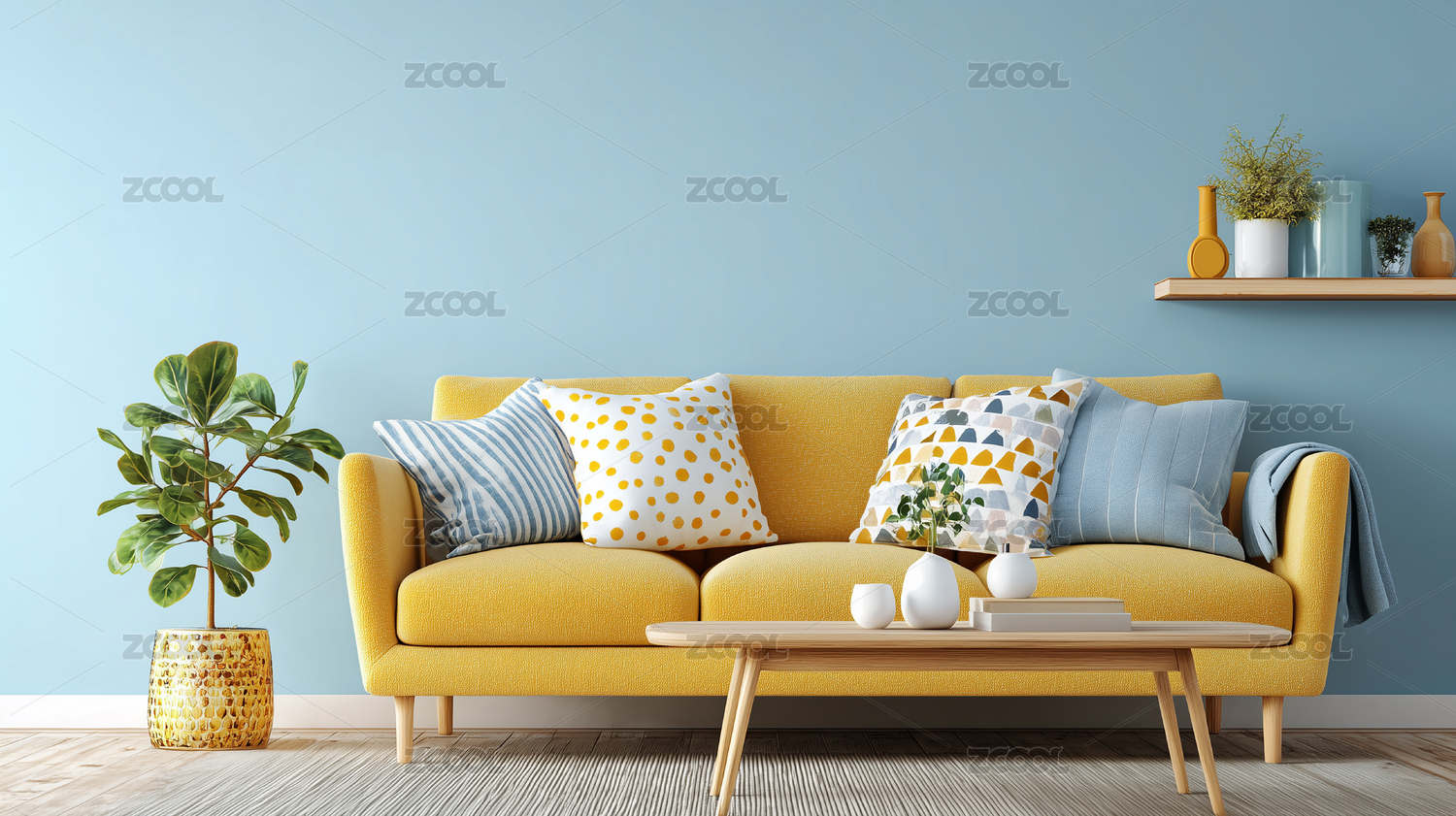 沙发,枕头,植物,落地灯,咖啡桌,地毯,室内,设计,现代,风格