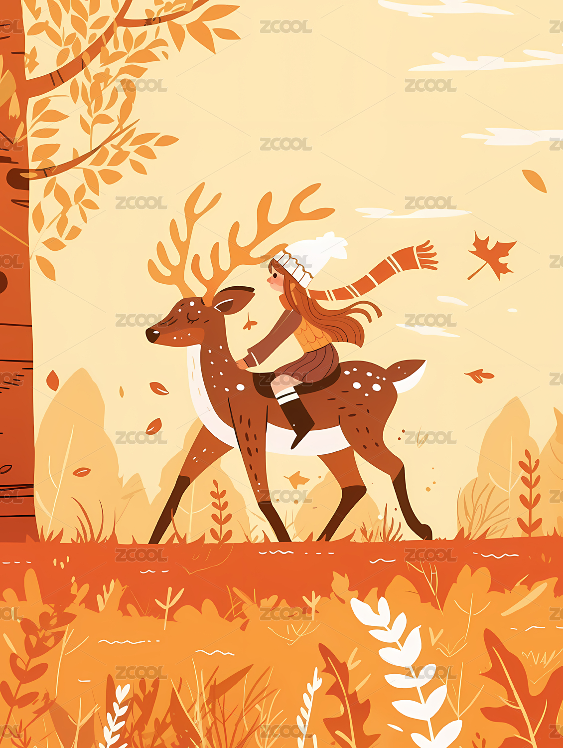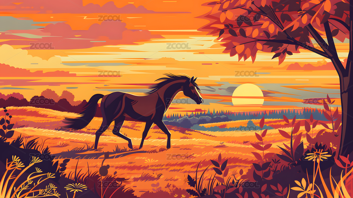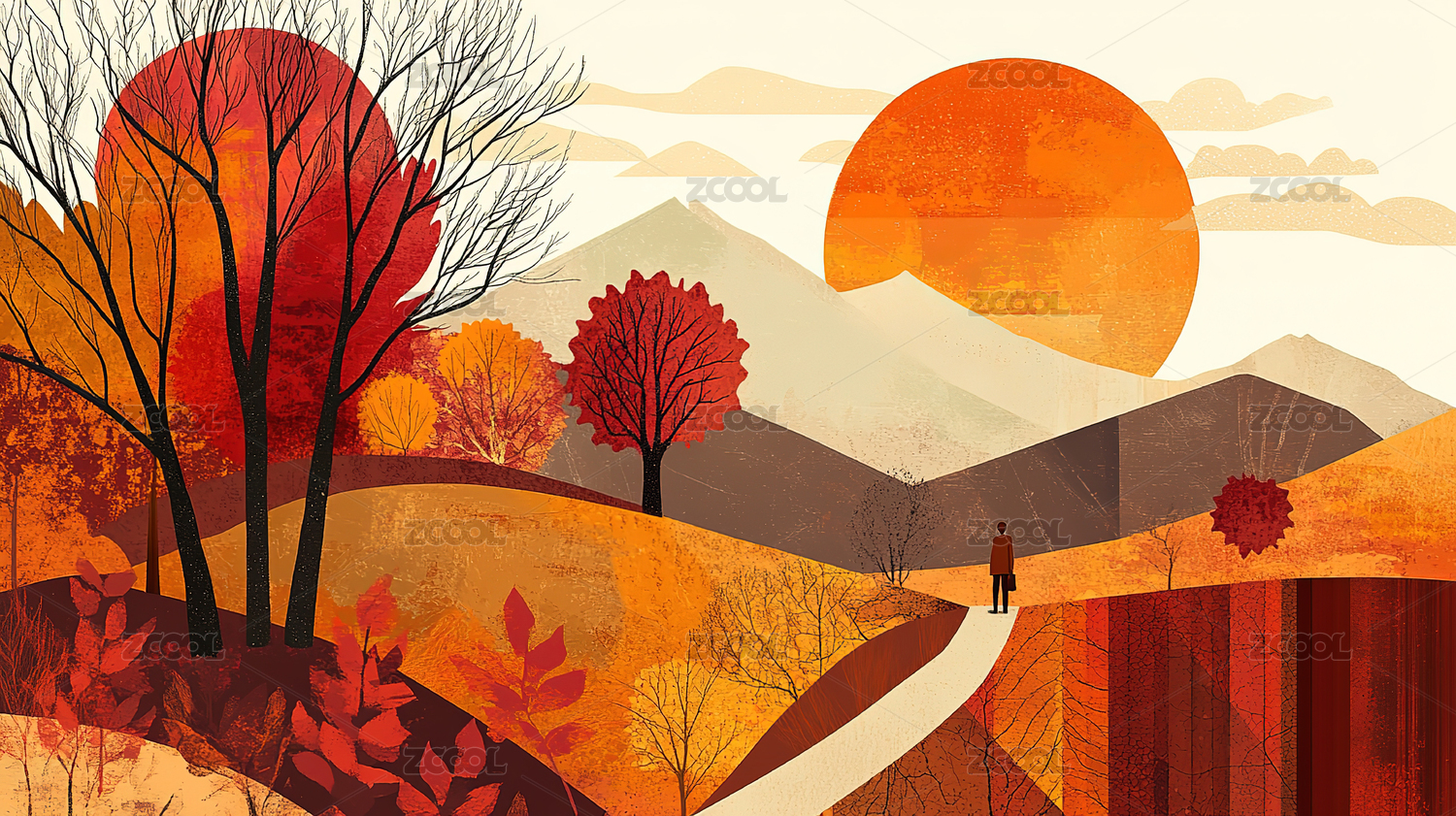 粉色, 静谧, 水彩, 艺术, 秋天, 风景, 田园, 插画, 橙色, 简约