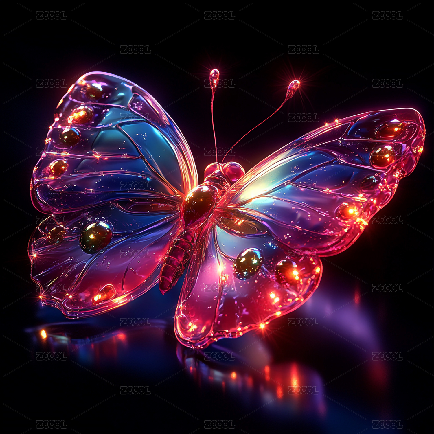 黑底炫彩发光透明蝴蝶